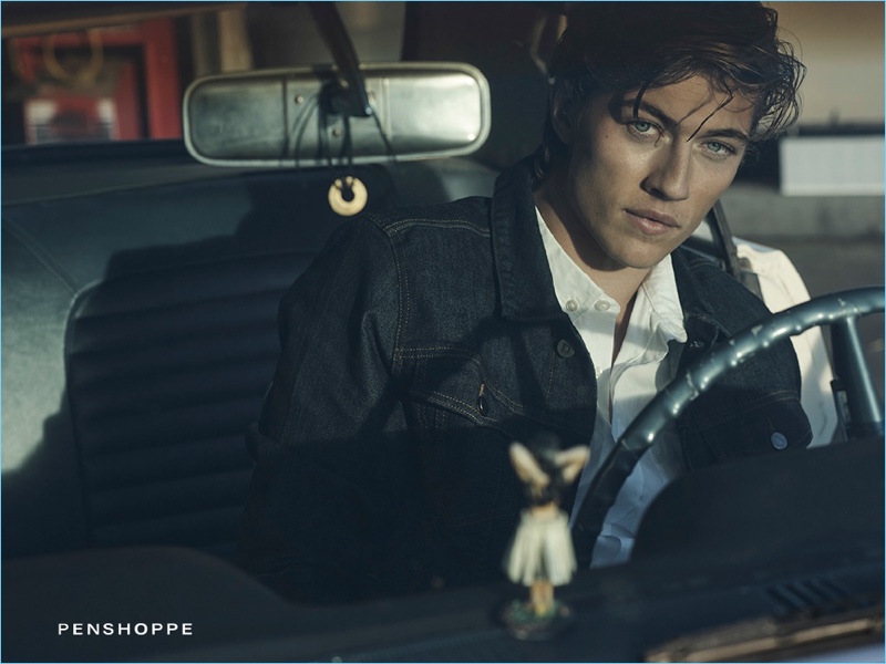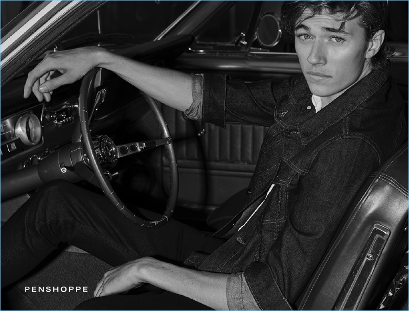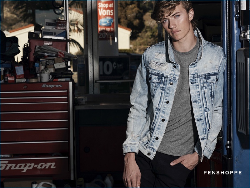 If you can’t get enough of Lucky Blue Smith, you’re in luck. We take a look at additional images from Lucky’s latest Penshoppe campaign. Channeling a retro attitude, Lucky fronts the brand’s DenimLab advertisement. Photographer Mark Squires captures the American model in a car garage. Not afraid to get his hands dirty, Lucky poses with tires. Lucky also showcases Penshoppe’s on-trend denim styles. Skinny fits come together with both distressed and biker-style details for the outing.