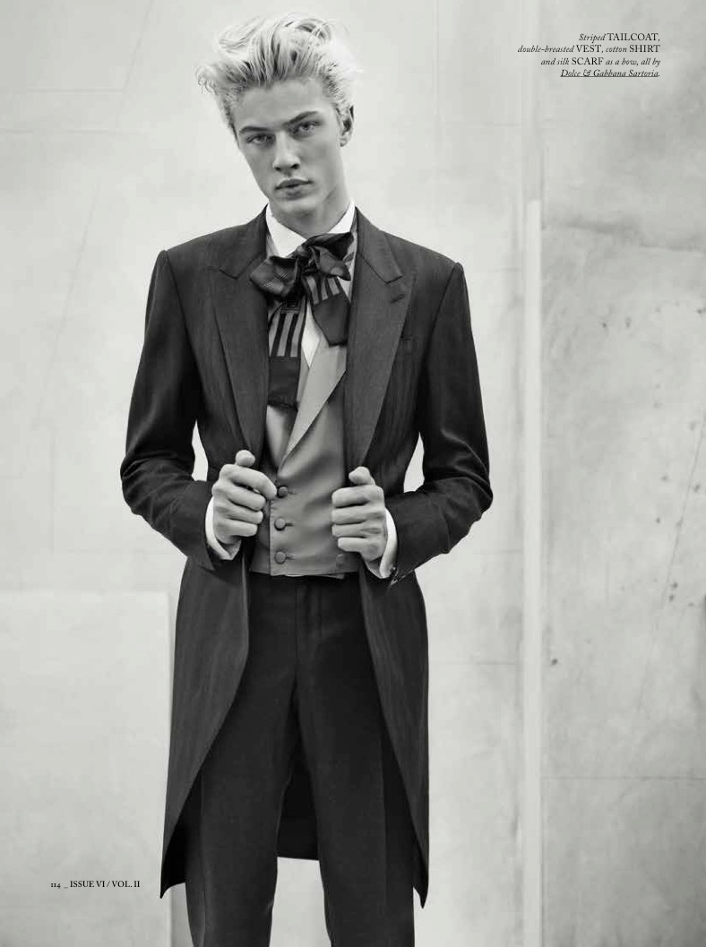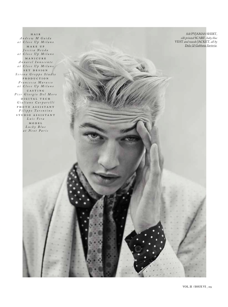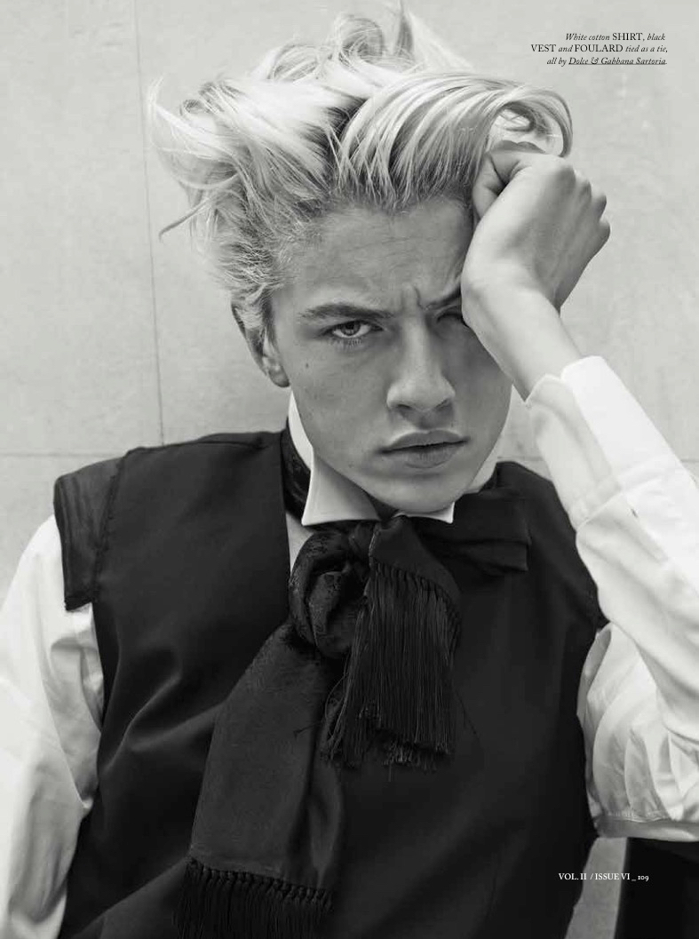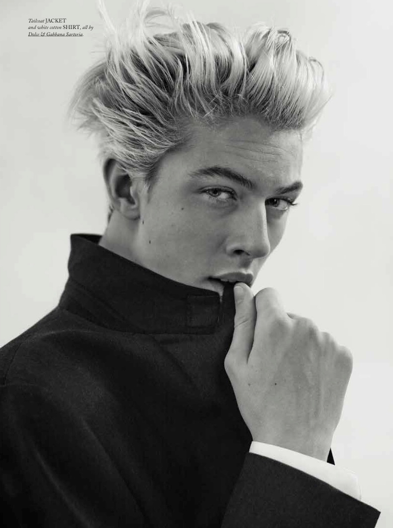 Following his Harper’s Bazaar China cover shoot, we catch up with Lucky Blue Smith as he graces the pages of Spanish magazine Hercules. Lucky appears in the magazine’s spring-summer 2015 edition, connecting with photographer Giampaolo Sgura. Getting a dandy makeover, Lucky is styled in the luxe fashions of Dolce & Gabbana Sartoria by Miguel Arnau.