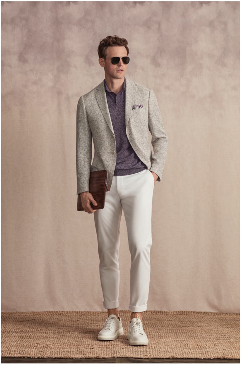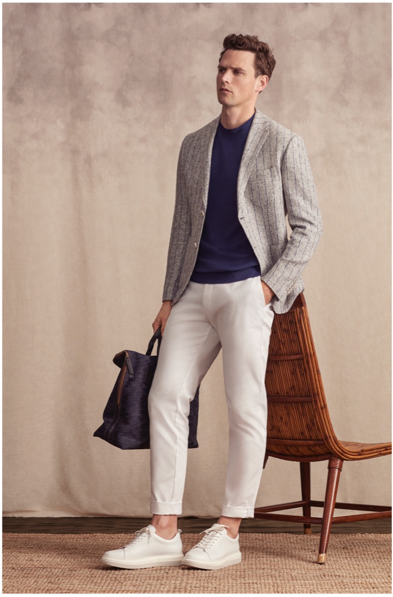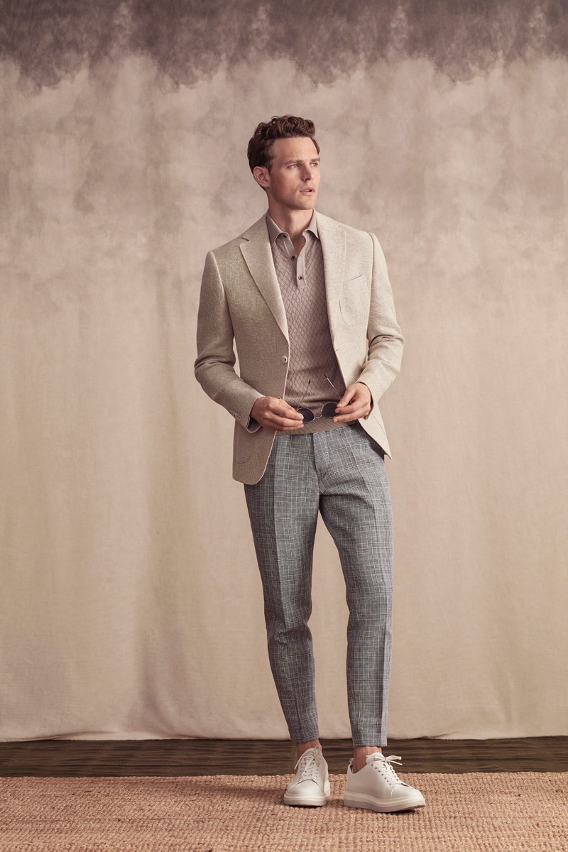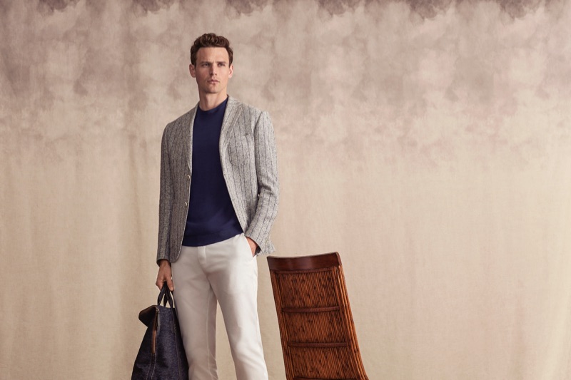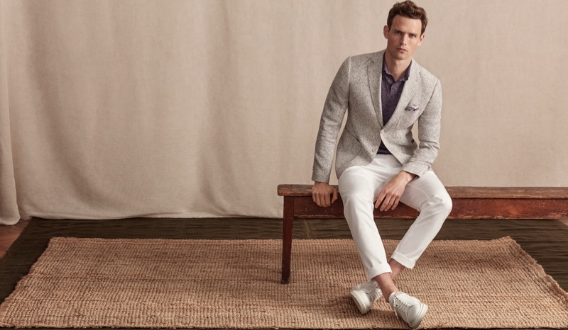 Guy Robinson continues to inspire as he links up with Lufian for spring-summer 2019. The British model dons a sophisticated wardrobe as he fronts the brand’s campaign and lookbook. Capturing the essence of a pleasant summer afternoon, photographer Serkan Emiroglu captures the outing. Soft tones complement Lufian’s elegant menswear. Stylist Nuray Kilic pieces together a chic lineup of ensembles that include pleated pants, knit polos, suit jackets, and more.