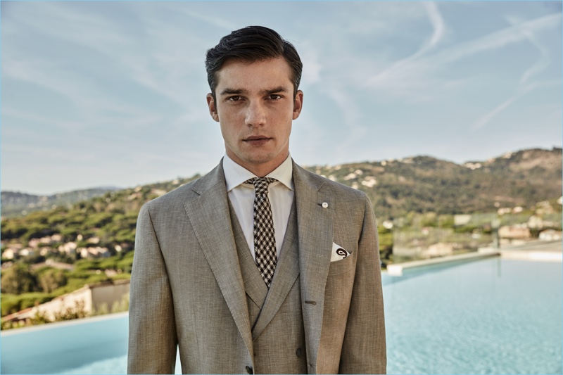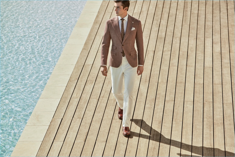 Luigi Bianchi Mantova takes us poolside for a look at its spring-summer 2017 collection. As usual, the Italian brand serves up an elegant affair. Putting its best tailoring front and center, Luigi Bianchi Mantova delivers an elegant lifestyle. Model Alexis Petit plays the label’s suave gentleman for the season. Fit to pass for an international spy, a la James Bond, Alexis dons sharp suiting. Circling in on prints and patterns, Luigi Bianchi Mantova impresses with checks, stripes, and more.