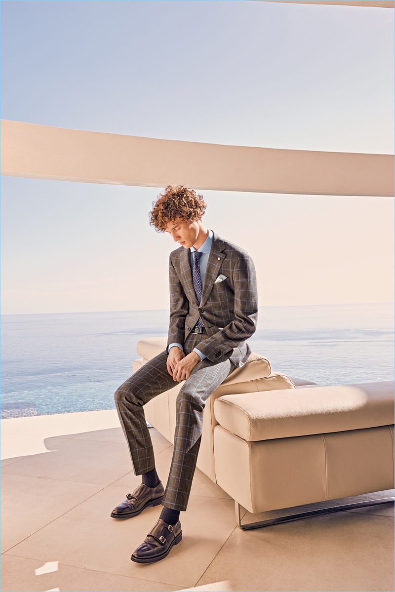 Luigi Bianchi Mantova delivers another dashing season for spring-summer 2018. The Italian brand reunites with Marçal Taberner for the occasion. A chic vision, Marçal inspires in impeccably tailoring pieces. He wears Luigi Bianchi Mantova’s sharp jackets, trim trousers, and smart shirts. Marçal also embraces an elegant front with Luigi Bianchi Mantova’s formal attire. The label provides dapper tuxedos and waistcoats.