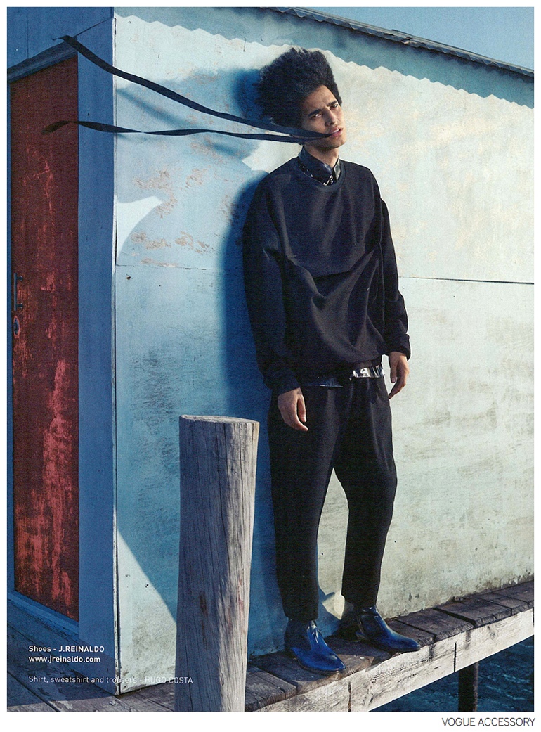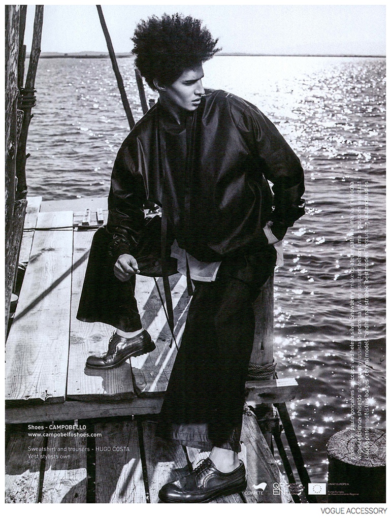 Shoes on Parade-Model Luis Borges connects with fashion photographer Frederico Martins for the September edition of Vogue Italia supplement Vogue Accessory. Outfitted by stylist Fernando Bastos Pereira, Luis heads outdoors for picture-perfect looks that include modern fall essentials, paired with a lineup of sleek black footwear. / Production by Paulo Gonçalves. Makeup by Atelier Patricia Lima. Hair by Rui Rocha. Photo assistance by Pedro Sa. Style assistance by Nelson Lima.