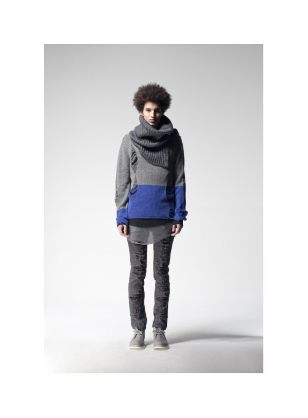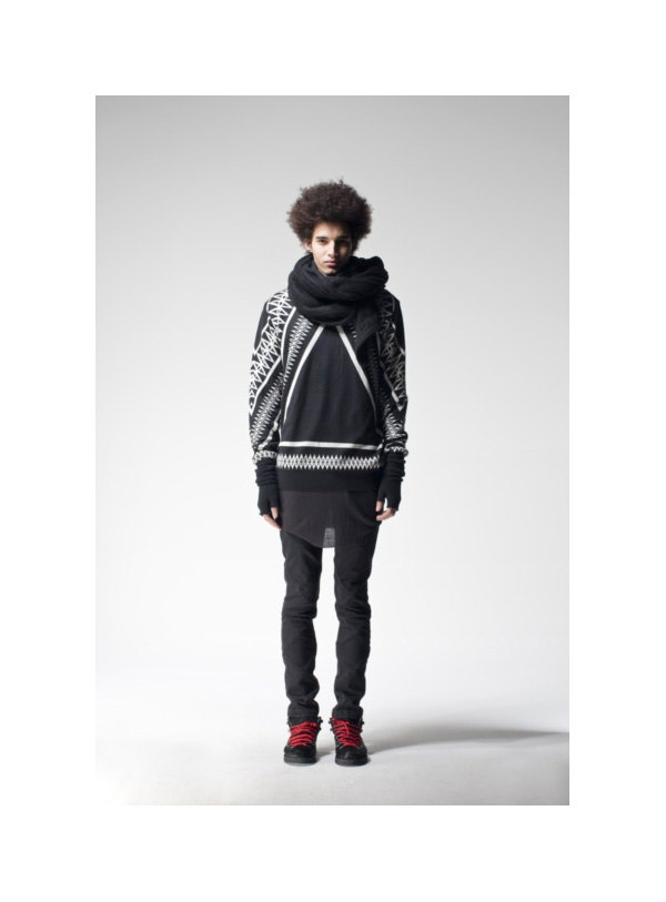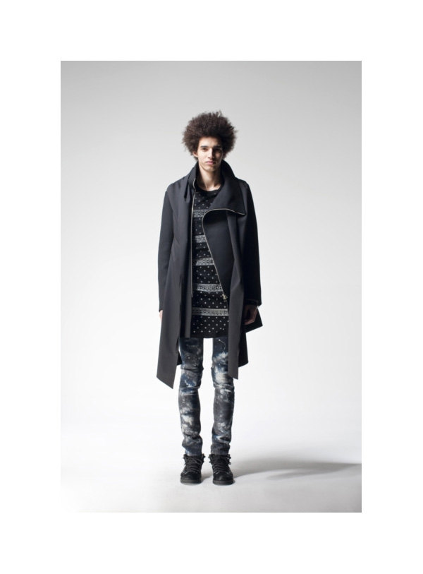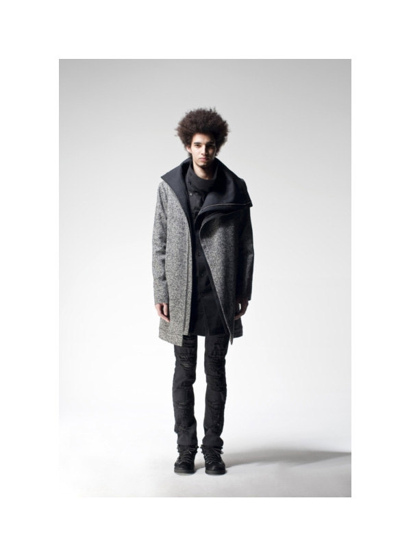 Luis Borges (DNA) tries General Idea’s fall 2010 collection on for size. Showcasing a dark collection, accented with red, blue and camel-toned neutrals, the Korean label hits it out of the park. Boasting flexible layers that answer to not only a certain sensibility, but a call to be modern, General Idea blends the gap between streetwear-inspired fashions and contemporary trends.