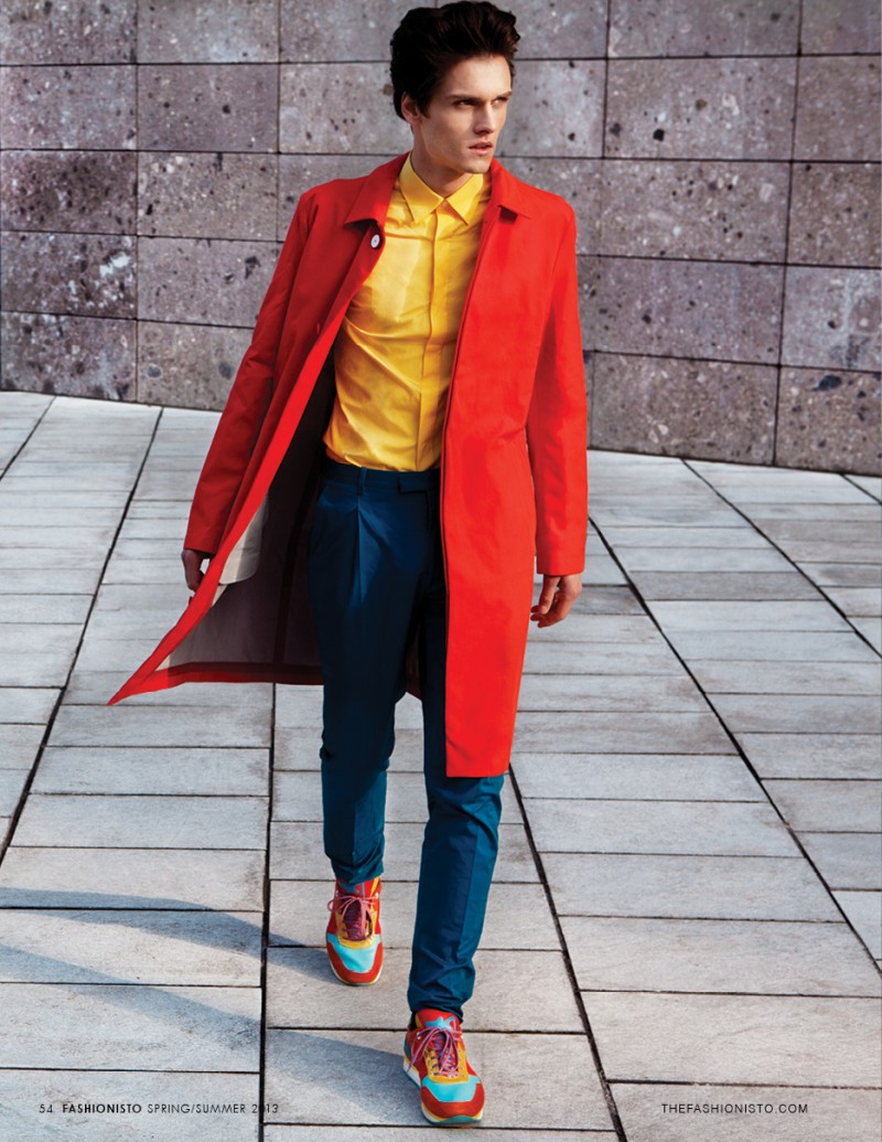 Color Fever-Captured by the lens of photographer Jay Schoen in Milan’s business district, d’men/Success models Luka Badnjar and Pierre-Harald Leducq star in a Fashionisto story featuring Salvatore Ferragamo’s spring/summer 2013 collection. Styled by fashion editor Demetrio Baffa Trasci Amalfitani, the boys are easily a center of attention in tailored pieces that boast bright colors, channeling the same Los Angeles artistry that inspired Salvatore Ferragamo creative director Massimiliano Giornetti’s current collection.