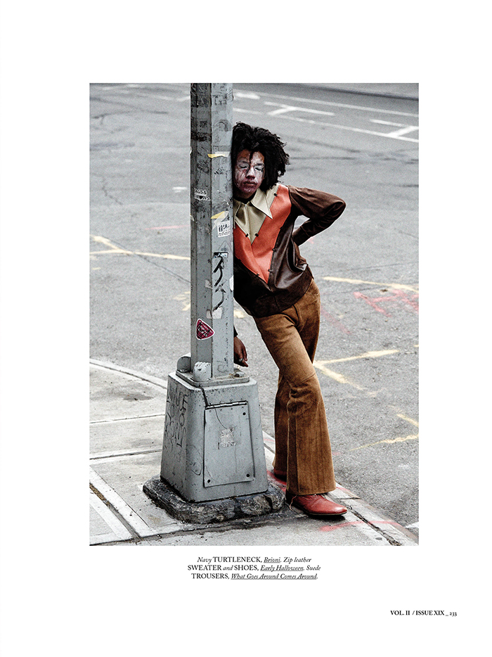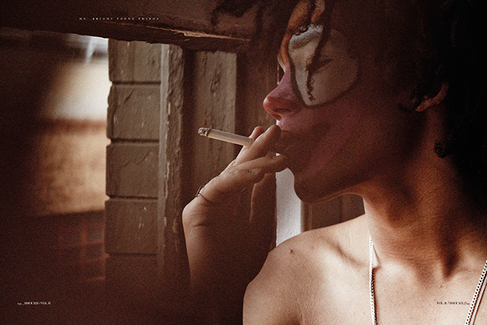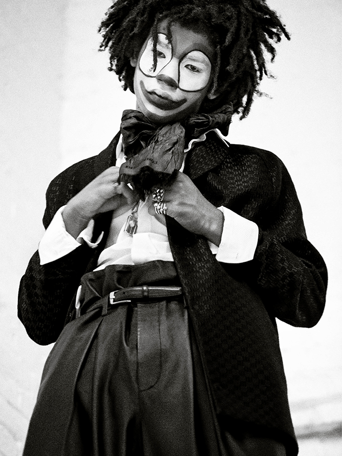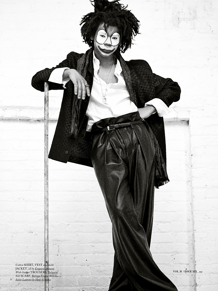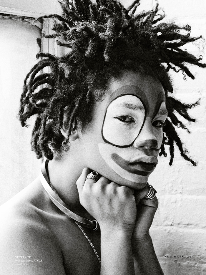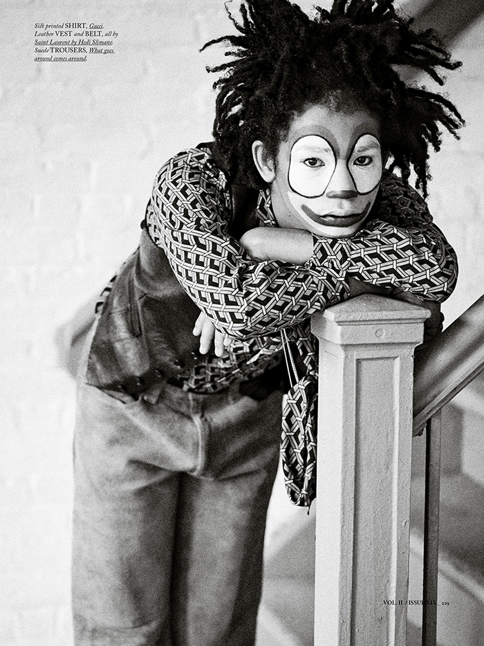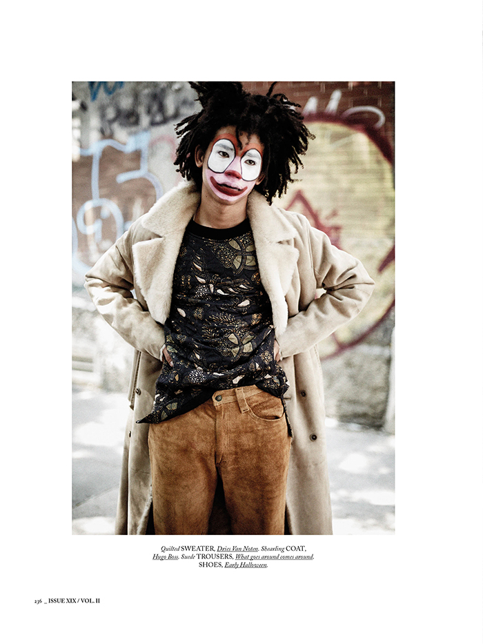 Starring in a story entitled The Young Master, Re:Quest model Luka Sabbat heats up the pages of Hercules Universal as a Bright Young Thing. Photographed by Daniel Riera, Luka puts on a clown face and rocks a Jean-Michel Basquiat inspired hairstyle for the fall story. Embracing a whimsical editorial spirit, Luka truly shines in a mix of chic black & white and color images. Showing over the top fashions from go-to designers such as Dries Van Noten and Saint Laurent, Luka is styled by Francesco Sourigues in fall’s must-haves.