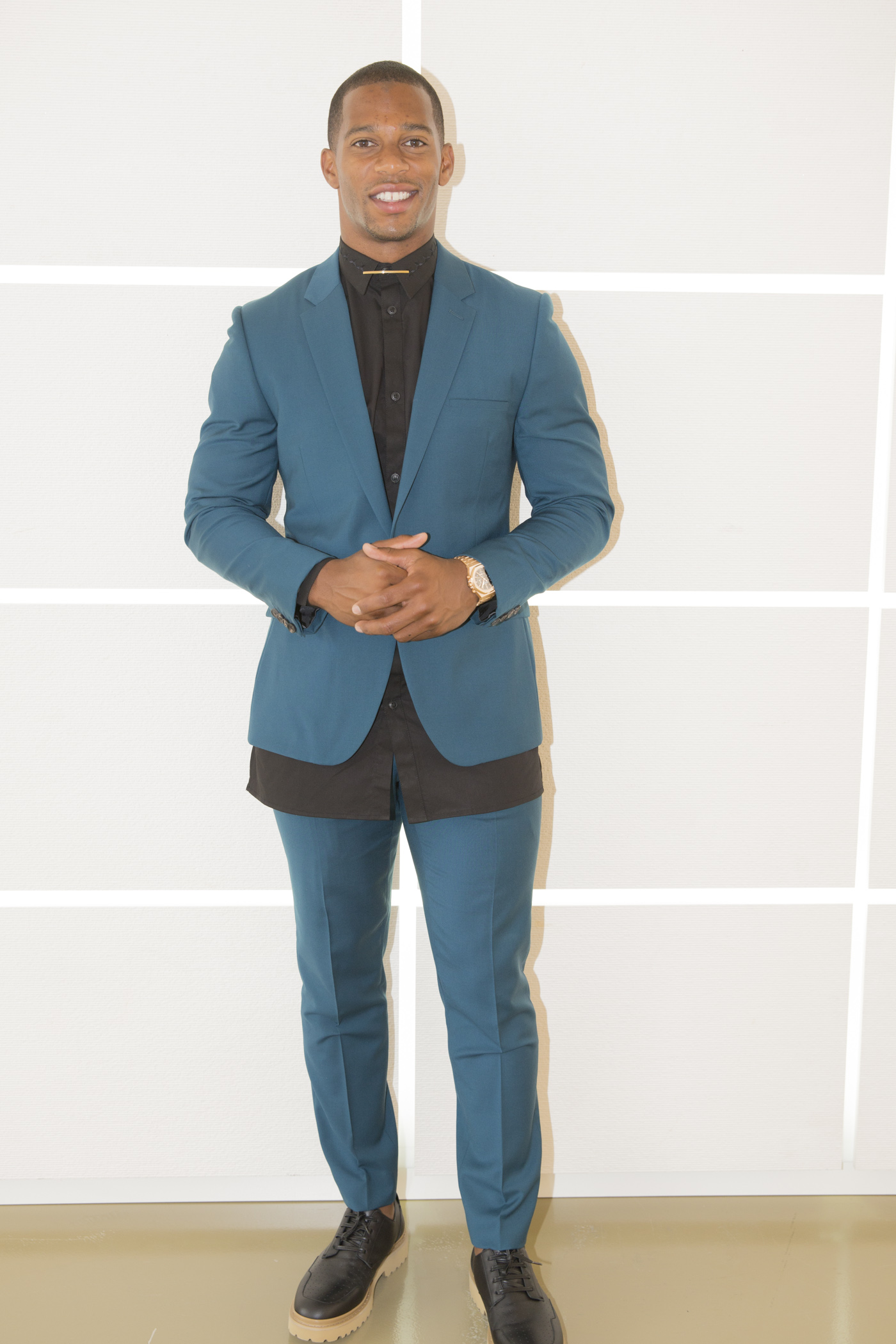 Calvin Klein Collection Spring 2015 Front Row–Celebrities were out in full force when men’s creative director for Calvin Klein Collection Italo Zucchelli presented the brand’s offerings for spring/summer 2015 at an event in Milan yesterday. The Hobbit actor Luke Evans and New York Giants star Victor Cruz were both in attendance, as well as rapper Iggy Azalea and her boyfriend Nick Young of the Los Angeles Lakers. The stars were all wardrobed by Calvin Klein for the event, with the men wearing pieces designed by Zucchelli and Azalea sporting a design by women’s creative director Francisco Costa.