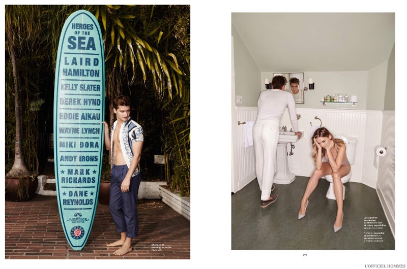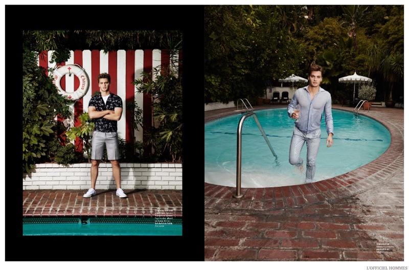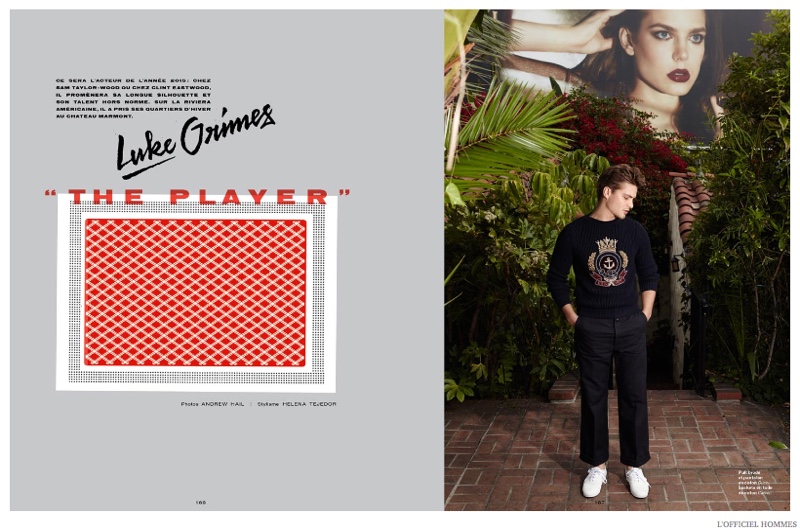Promoting American Sniper and with an upcoming role in Fifty Shades of Grey, actor Luke Grimes graces the latest cover of L’Officiel Hommes Paris. The former model connects with photographer Andrew Hail for the cover shoot, donning spring fashions pulled together by stylist Helena Tejedor. Captured as The Player, Grimes’ wardrobe includes choice pieces from the likes of Versace and Paul & Joe.