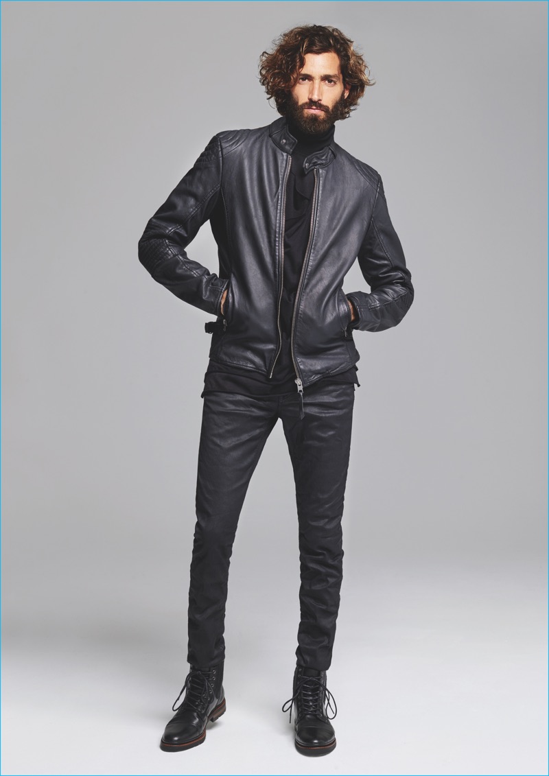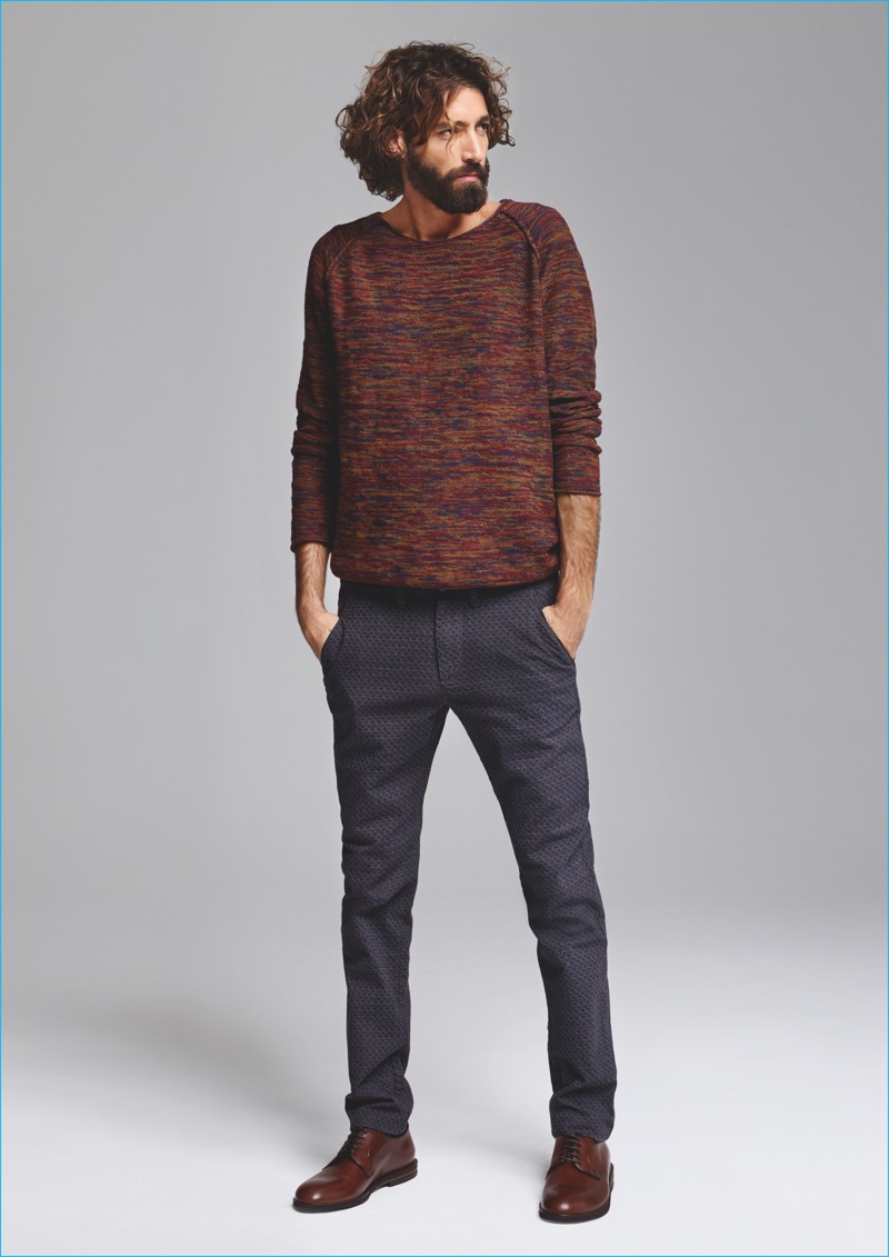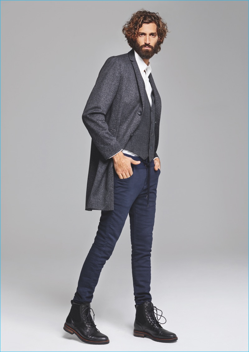Accenting earthy khakis and tans, MAC embraces natural pigments for fall, incorporating blue, grey and oxblood red into its core color palette. In addition to its signature denim and jog ‘n jeans, MAC presents cargo trousers and waxed jeans. Committed to being an eco-friendly fashion brand, the label’s new collection also includes recycled denim that contributes to up to one-fourth of the range’s fabric content.