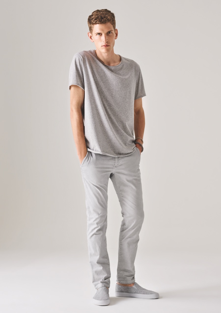 Andre Feulner is cool in grey chinos for MAC Jeans.