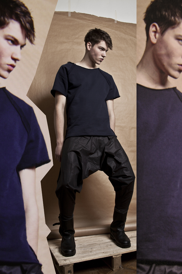 Modern Fusion–Photographed by Krzysztof Wyzynski, Maciej Świdnicki of Panda joins AMQ model Tomek Szałański for the spring/summer 2012 lookbook of Ptaszek for Men. Fusing a modern aesthetic with punk inspirations, varying pieces come together, showcasing a youthful point of view. From ballooning drop crotch trousers and boxy tops to printed separates, a wardrobe of interchangeable pieces sparks a personable season, propelled by the daring urbanite. Altogether emphasizing sharp proportions juxtaposed with various bold colors, Ptaszek for Men achieves a winning combination for the fun-loving risk taker.