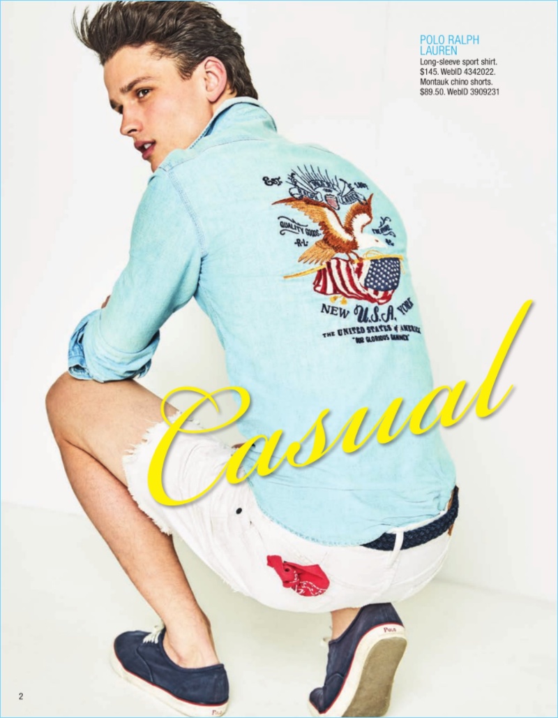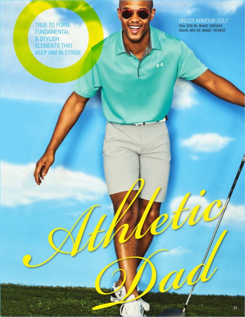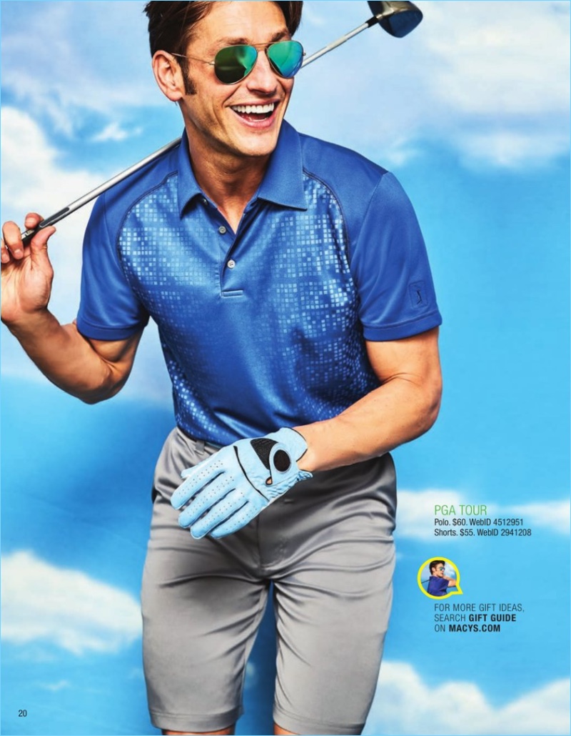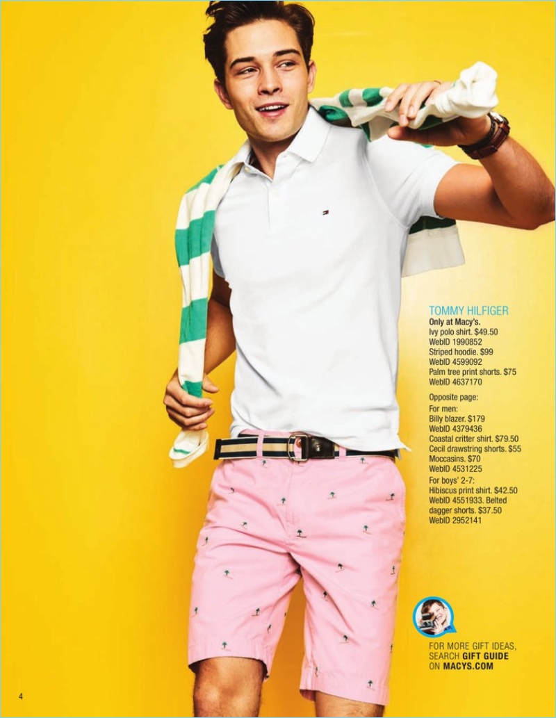 PinCovering Macy’s Father’s Day catalogue, Simon Nessman wears a POLO Ralph Lauren polo $59.99 and drawstring shorts.