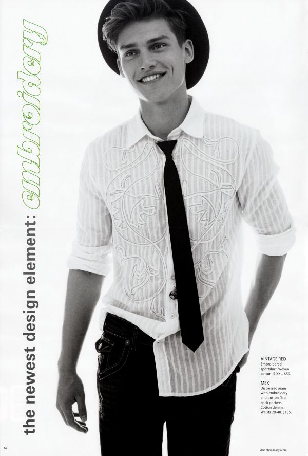 For those of you who follow on Twitter, you might remember a recent mention of sighting Vladimir Ivanov and Petey Wright in the most surprising of places. Well, that place happens to be a recent denim mailer sent out by Macy’s that also includes Armando Cabral and Mikus Lasmanis. Steel Machines is in the process of scanning the mailer and was thoughtful enough to send over these previews.
