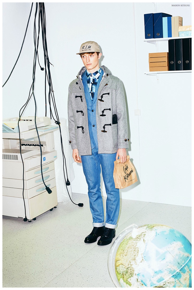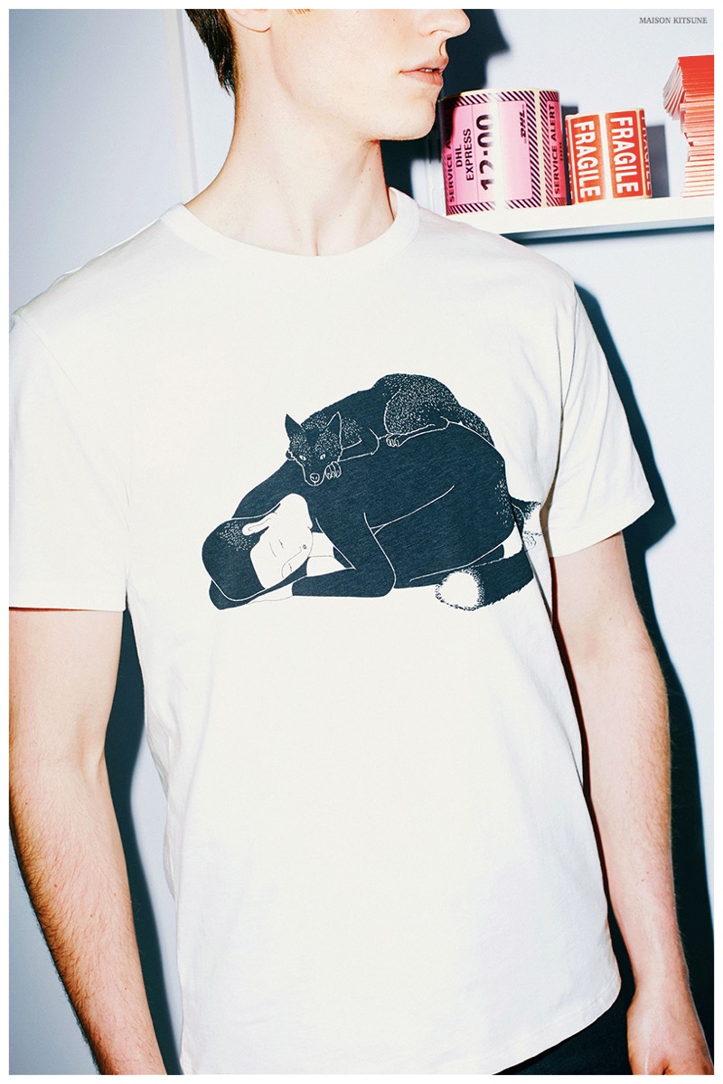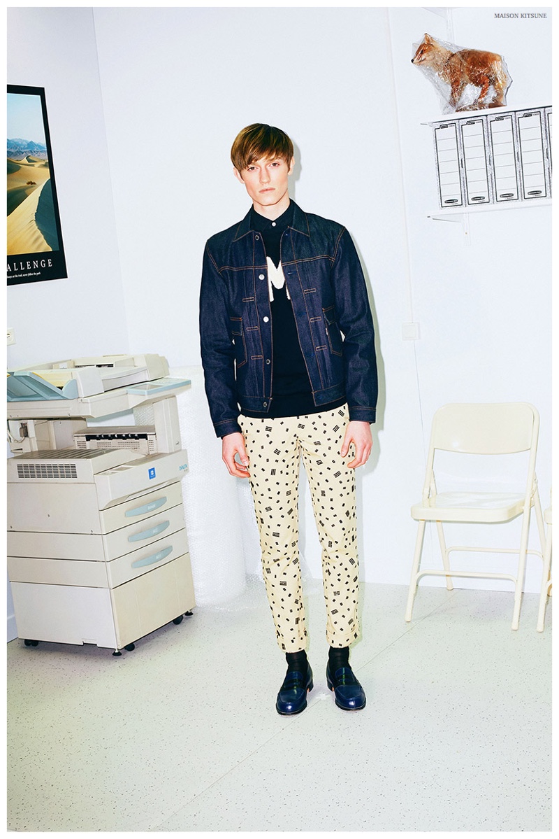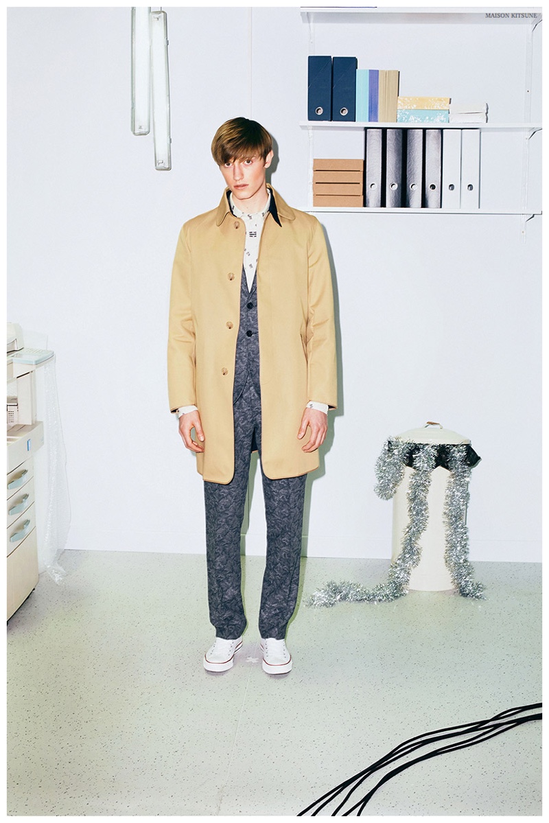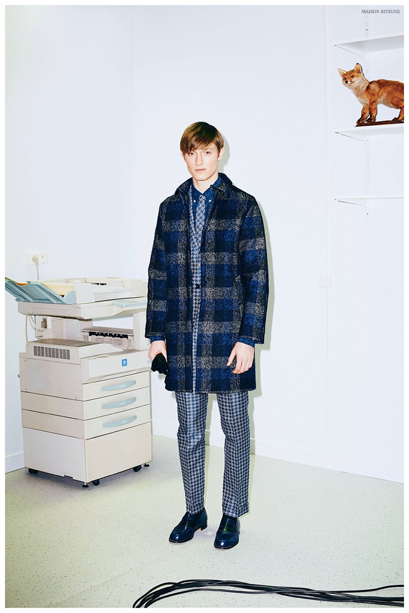 Looking to South Korean culture as the inspiration of its fall-winter 2015 menswear collection, Maison Kitsune looks to the trendsetting choices of color, design and patterns for a highly wearable outing. Relaxed cuts are put together with houndstooth, stripes and prints in an attractive palette of neutrals. The work of South Korean artist Moonassi inspires screen printed pieces as well as dreamlike patterns for an inspiring finish.