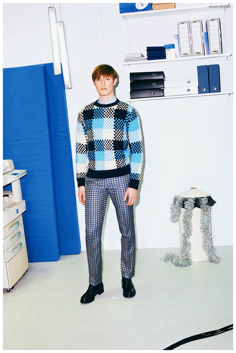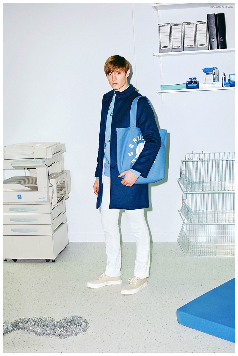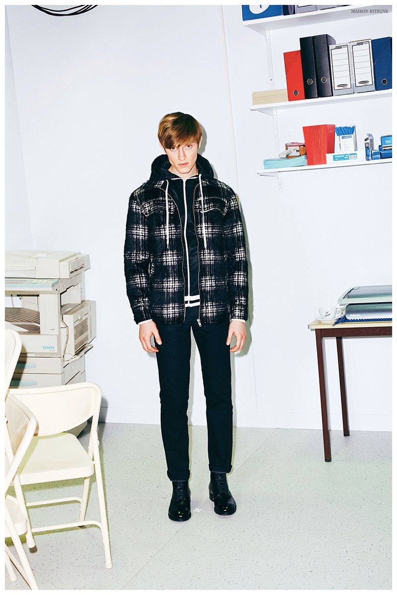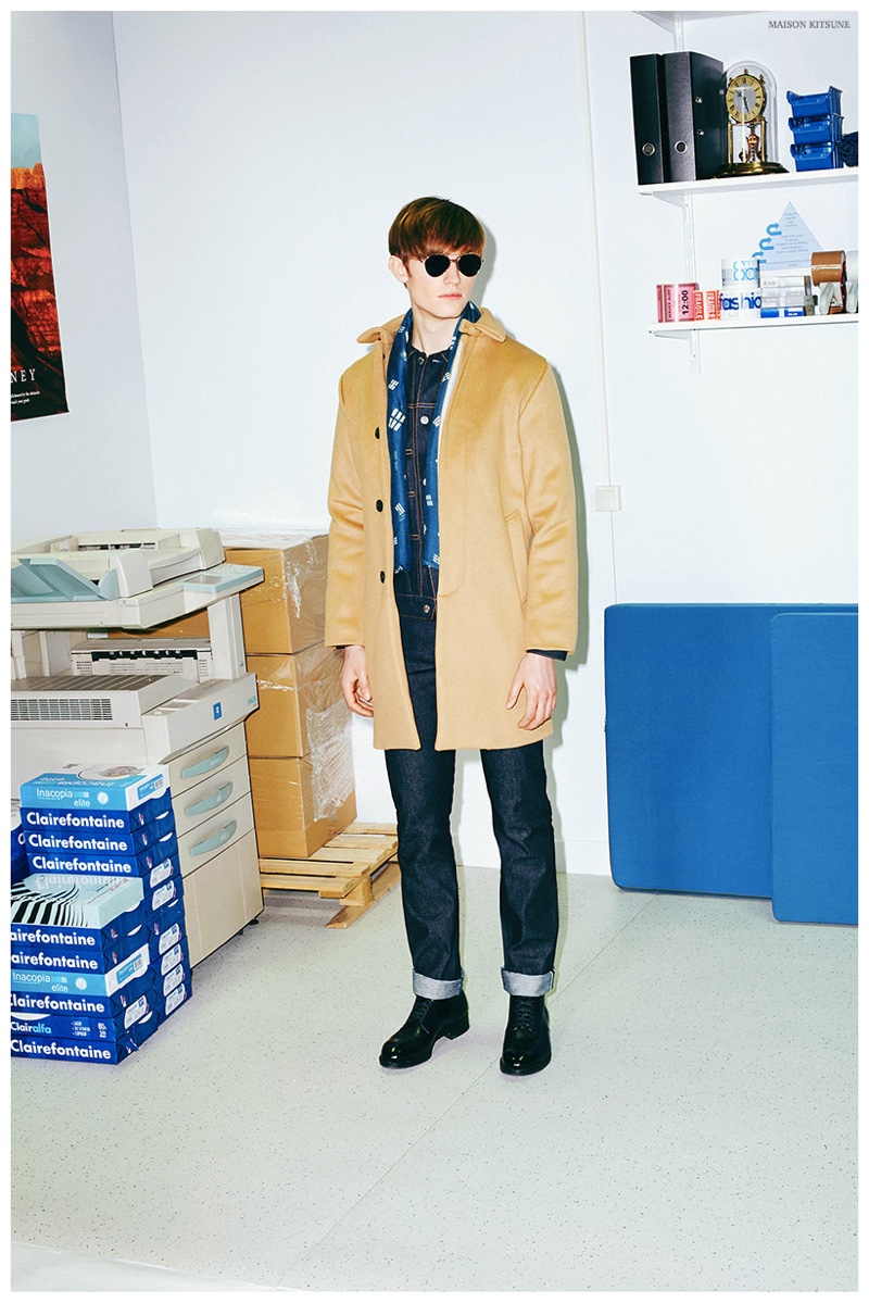 Looking to South Korean culture as the inspiration of its fall-winter 2015 menswear collection, Maison Kitsune looks to the trendsetting choices of color, design and patterns for a highly wearable outing. Relaxed cuts are put together with houndstooth, stripes and prints in an attractive palette of neutrals. The work of South Korean artist Moonassi inspires screen printed pieces as well as dreamlike patterns for an inspiring finish.