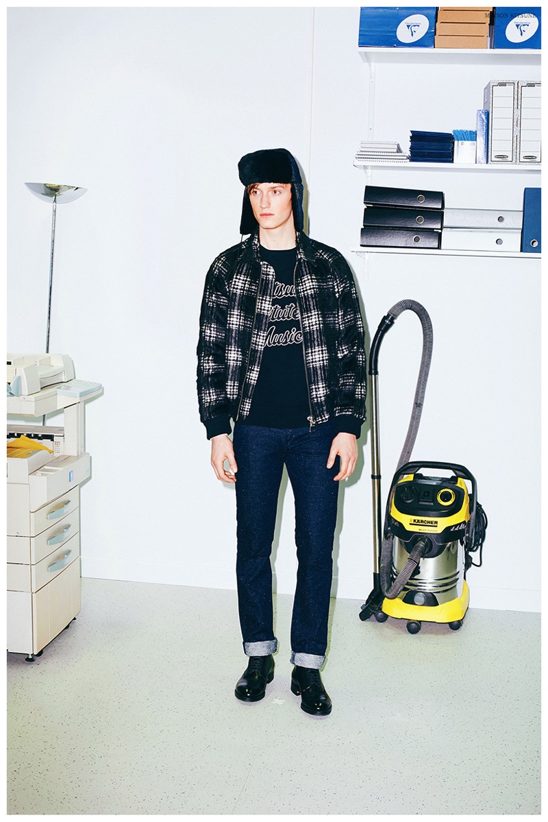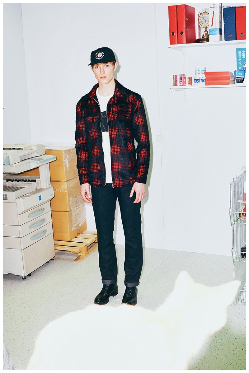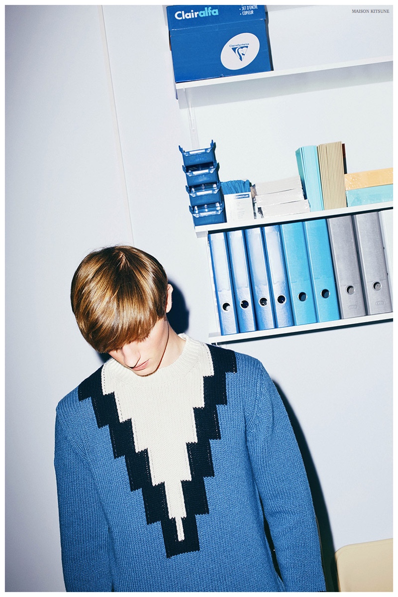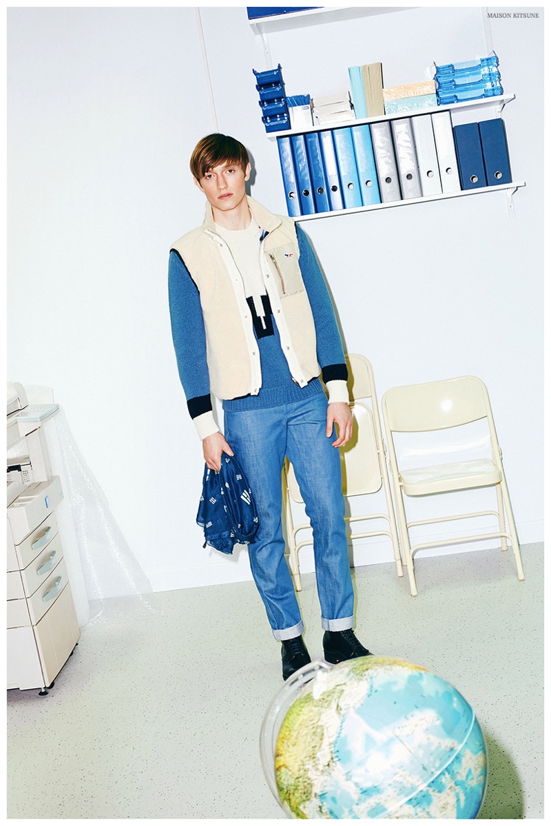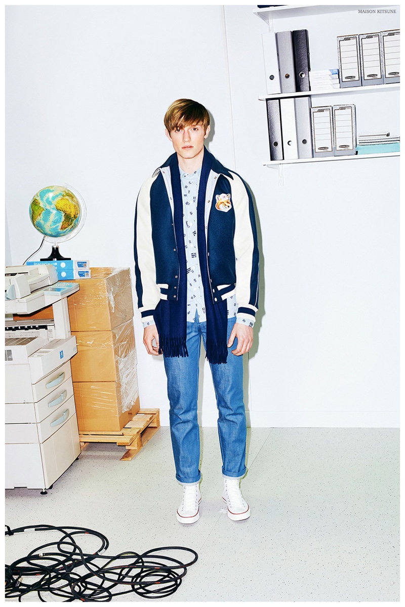 Looking to South Korean culture as the inspiration of its fall-winter 2015 menswear collection, Maison Kitsune looks to the trendsetting choices of color, design and patterns for a highly wearable outing. Relaxed cuts are put together with houndstooth, stripes and prints in an attractive palette of neutrals. The work of South Korean artist Moonassi inspires screen printed pieces as well as dreamlike patterns for an inspiring finish.