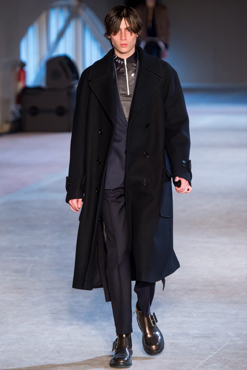 Oversized cable-knit sweaters were deconstructed and the dufflecoat served as inspiration for a collarless blazer. The dufflecoat itself was treated to sleeveless renditions that boasted a split back.