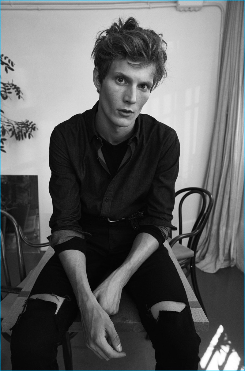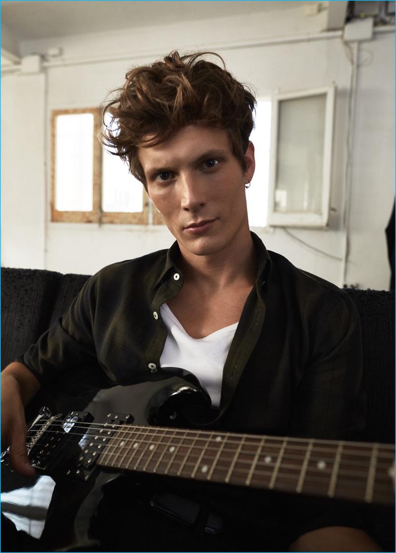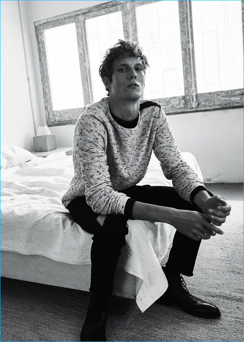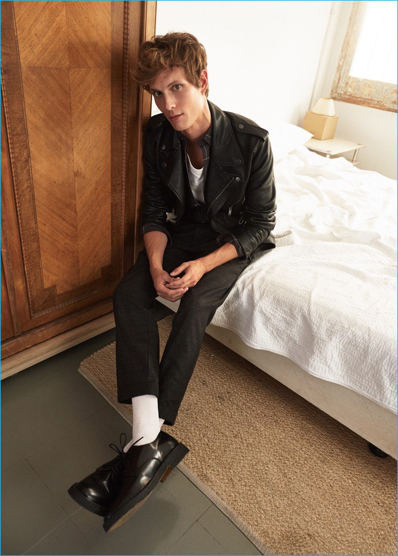 Mango makes a new post-punk style proposal with its latest men’s edit. Enlisting the help of French model, Felix Gesnouin, the Spanish brand highlights modern black essentials. Making a casual statement with a bevy of skinny jeans, cotton sweaters, and check shirts, Mango calls for an easy but cool wardrobe. Embracing a nonchalant attitude, Felix hits a stylish chord in timeless standouts that range from the leather biker jacket and flecked sweater to a faux shearling lined denim jacket.
