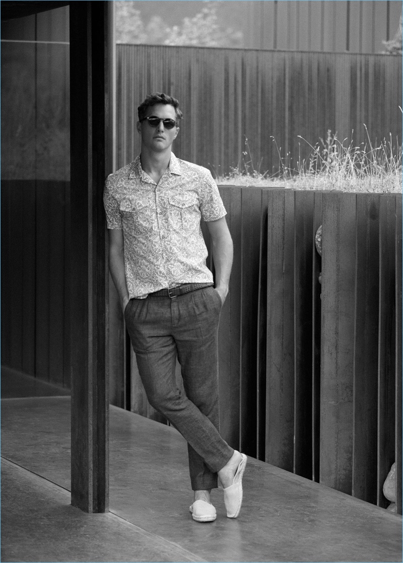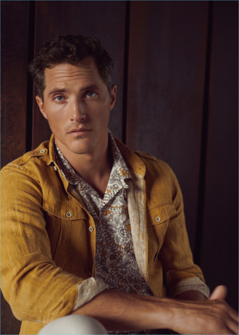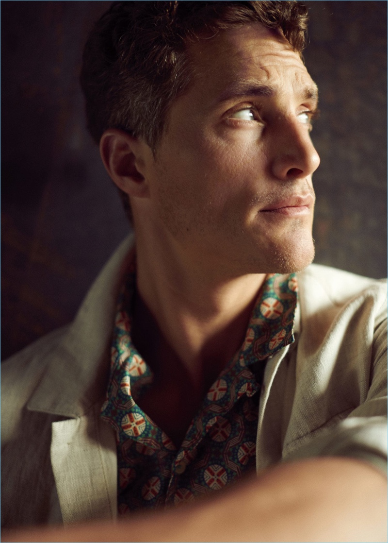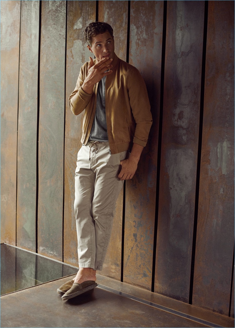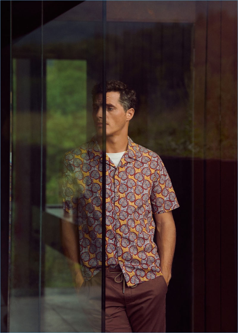 Continuing a summer outing to the village of Deià, Ollie Edwards models Mango’s latest arrivals. The British model embraces transitional style for the occasion. Ollie wears a selection that includes timeless menswear. He dons key pieces that range from a suede jacket and henley to a Cuban-collared short-sleeve shirt. Mango’s selection also features must-haves like white denim jeans and the field jacket.
