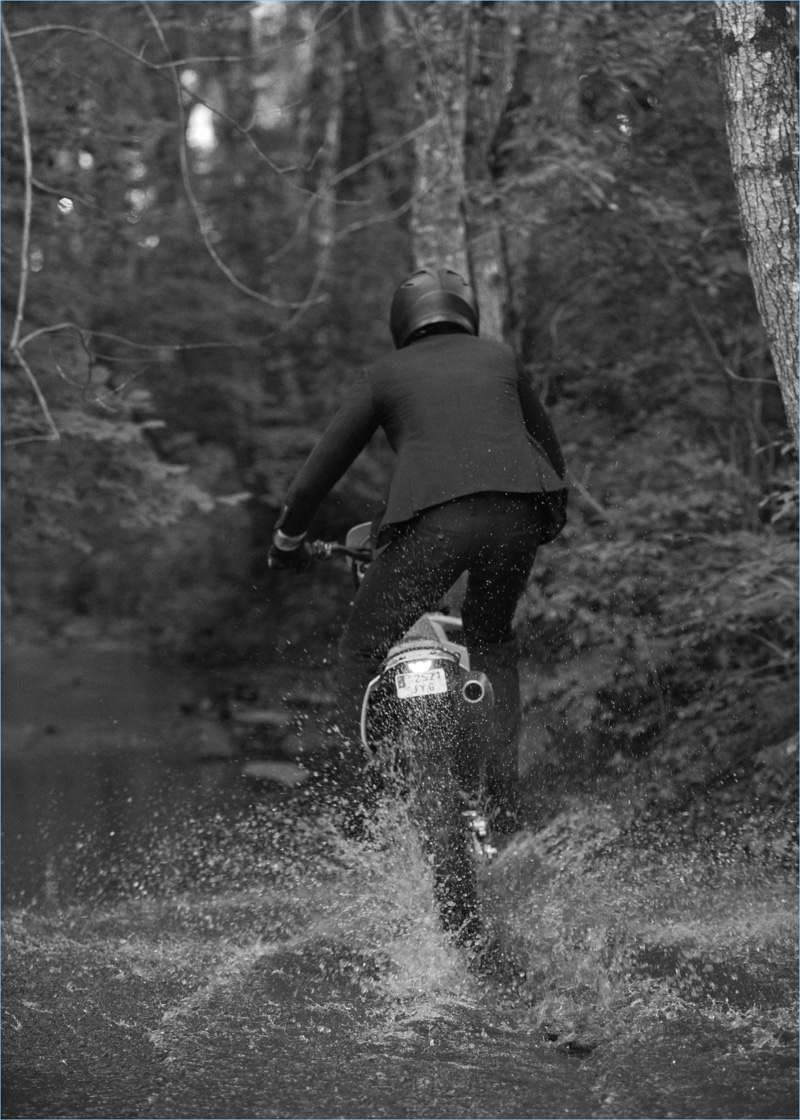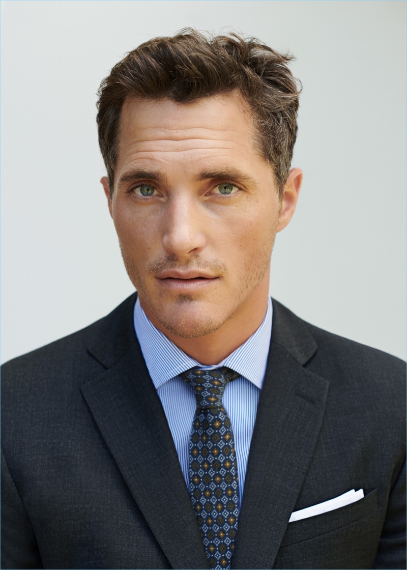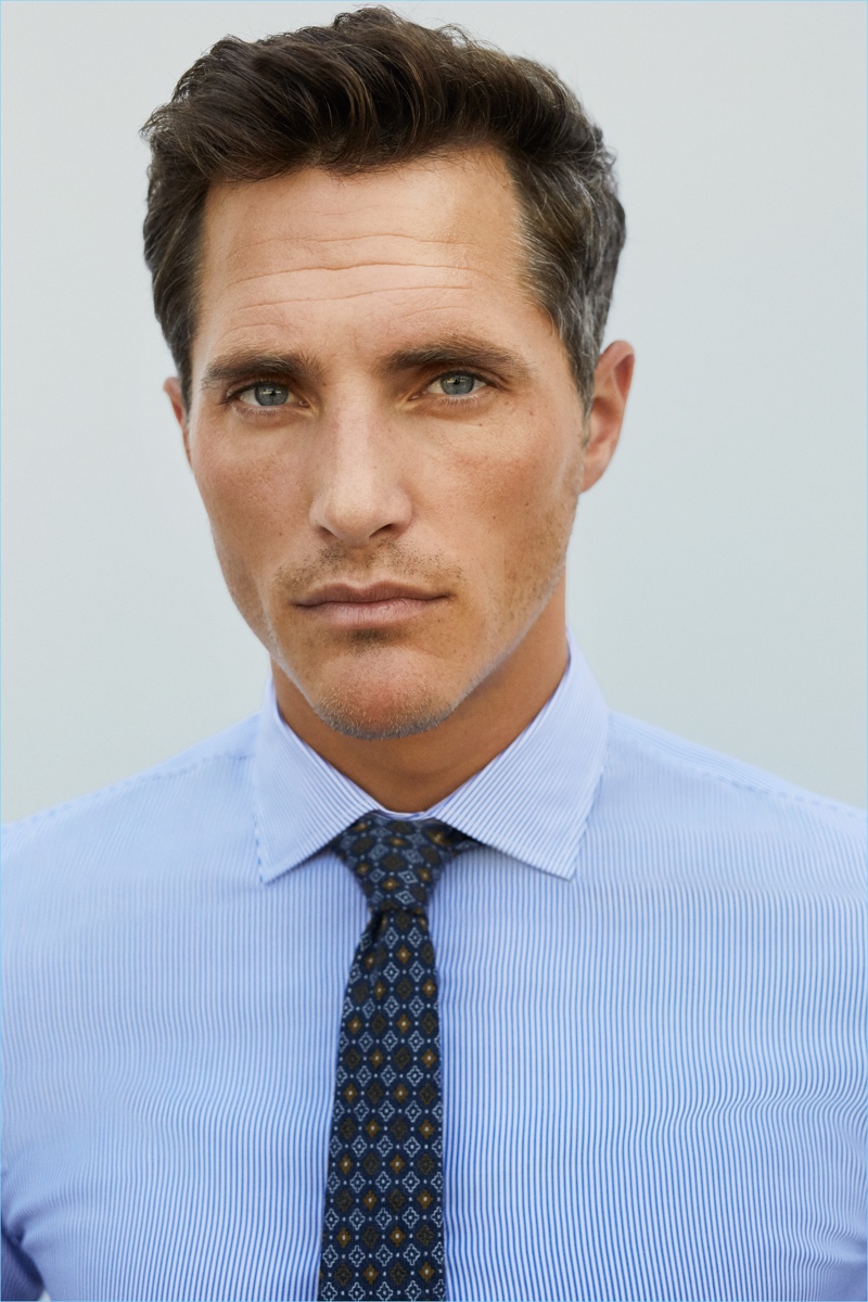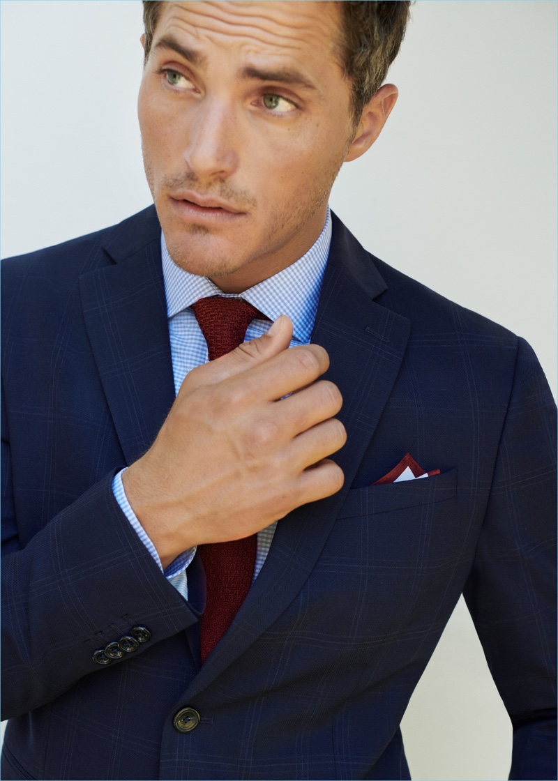Ollie Edwards reunites with Mango Man and heads outdoors. The British model dons the Spanish label’s new travel suit. The innovative suit meets the demands of the modern man with its stretch, water-resistant, and crease-free qualities. Mango’s suit also features lightweight textiles and comes in light grey, Prussian blue, and navy check.