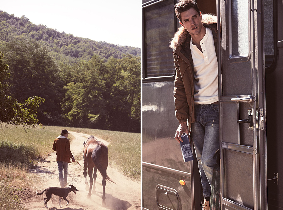 Following a fall outing, model and musician Josh Beech reunites with Mango Man. Heading outdoors, the British model sports Mango Man Blacksmith’s winter 2015 collection. The range takes its inspiration from the 1970s. Delivering practical classics with a worker’s style, Mango lays out denim essentials for the season at heart.