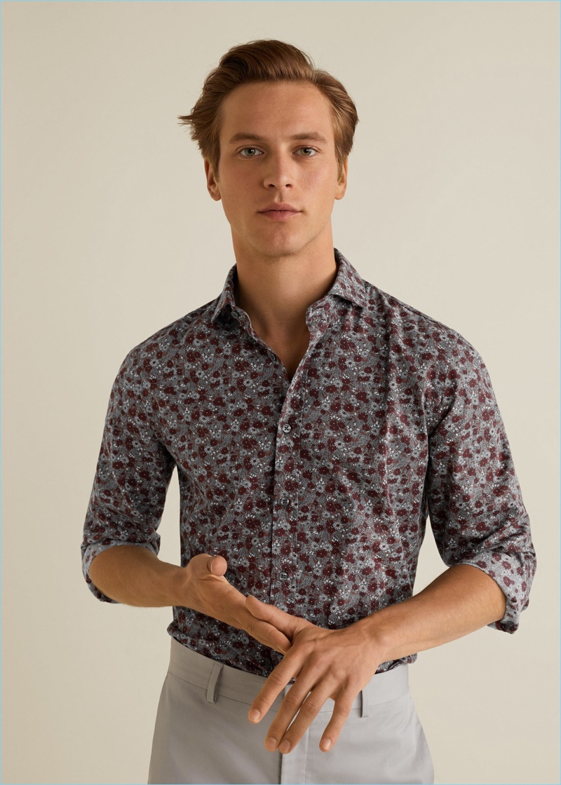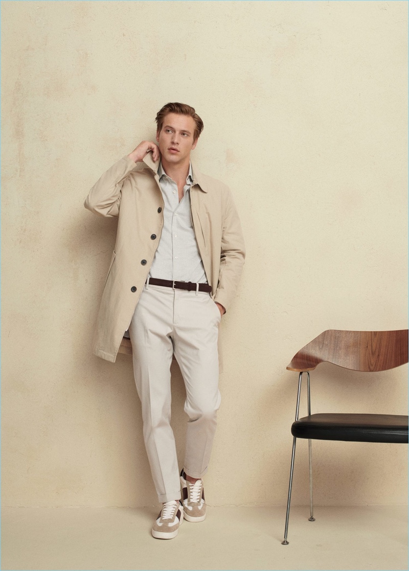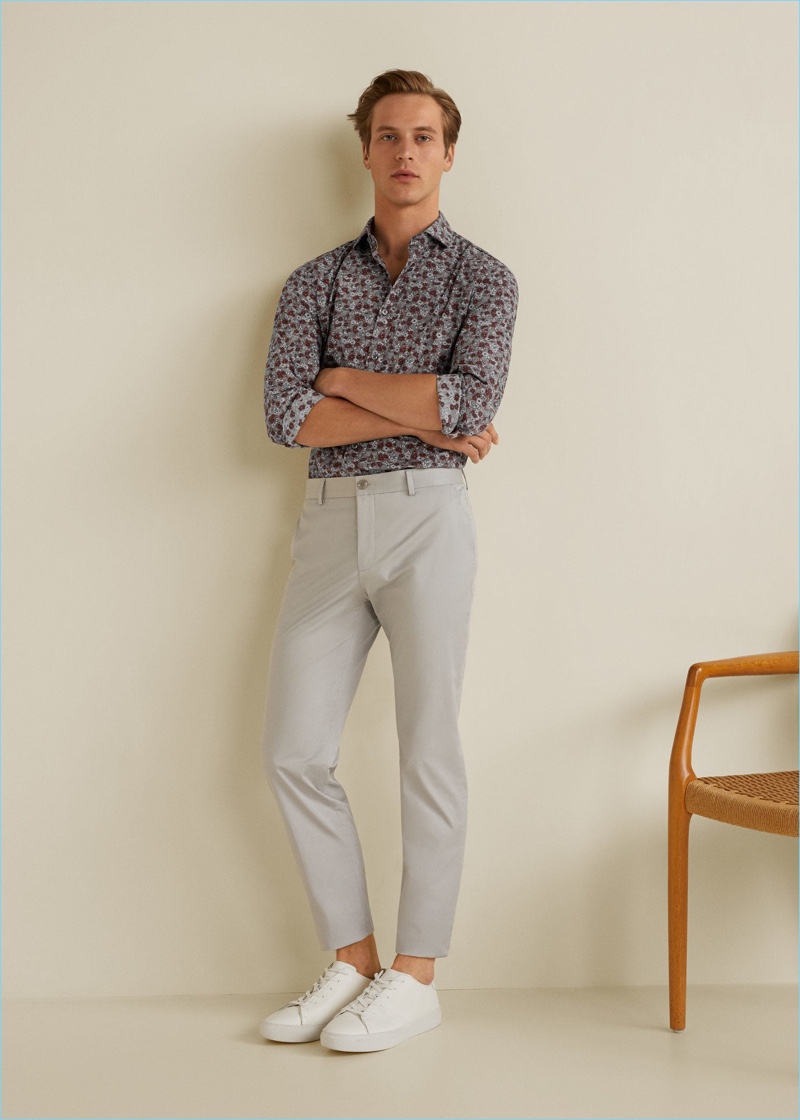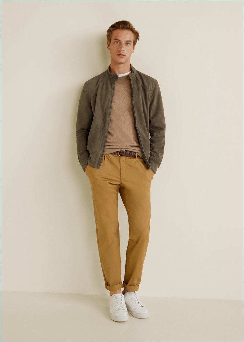 Mango Man welcomes in the new season with a batch of ready to wear arrivals. Jules Raynal connects with the Spanish brand to showcase its smart menswear. The French model takes to the studio in ensembles that can easily transition from summer to fall. A practical but chic selection revolves around neutral colored pieces. Front and center, Jules dons must-haves that include a lightweight cardigan, suede jacket, floral print shirt, and white jeans.