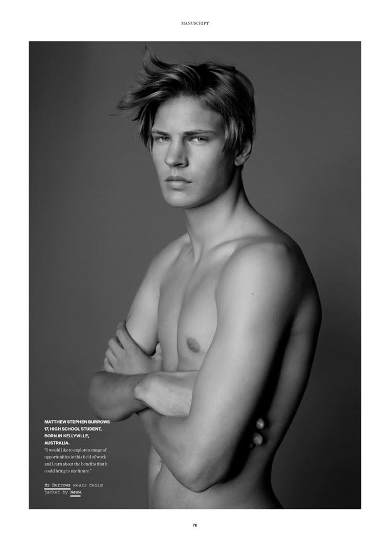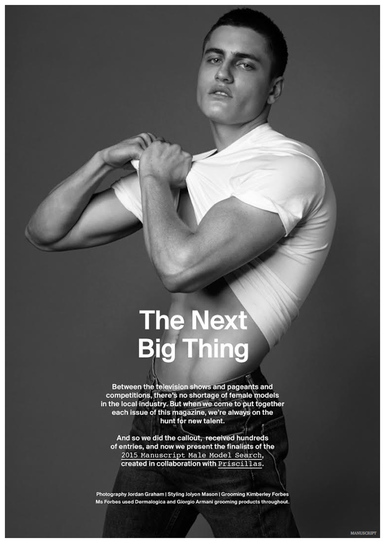 Australian magazine Manuscript collaborates with local modeling agency Priscillas to search the for the next top model. Narrowing down the the prospective fresh faces to four, Manuscript enlists photographer Jordan Graham and stylist Jolyon Mason for a new photo shoot. The Manuscript Model Search finalists, which are Luc Jan Birmes, George Owen Fell, Matthew Stephen Burrows and Xarve Fritz Bucholz, hit the studio, posing in denim and basic t-shirts, while showing their natural model attraction.