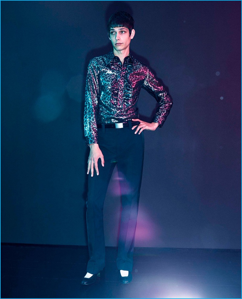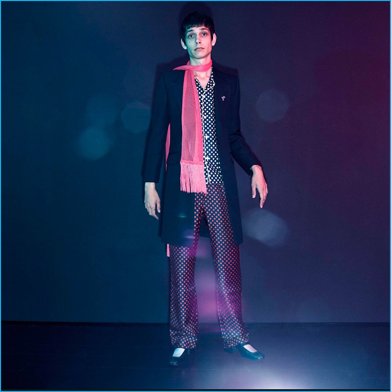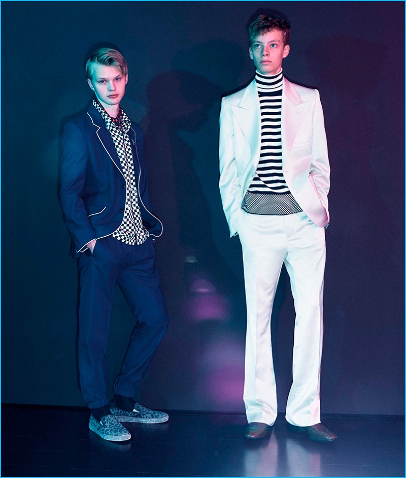 Marc Jacobs took on rock style for its spring-summer 2017 men’s collection. Channeling music icons such as Keith Richards and Mick Jagger, a mix of tailoring and flashy details set the tone for the season. Making a case for the original MTV generation, the label unveiled shirts and sweaters with a graphic appeal. Dressed in checkerboards, leopard and stripes, the selection accented oversized trousers, satin bomber jackets, cigarette fit jeans and sharp lean overcoats.
