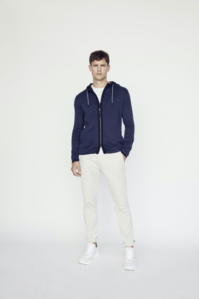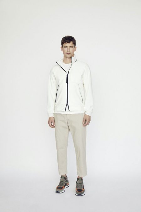 Marc O’Polo channels a nautical flair with its spring-summer 2020 collection. Model Guy Robinson reunites with the brand as he hits the studio to showcase the label’s latest styles. Casual fashions are front and center with a color palette of tan and navy hues. A versatile wardrobe includes slim-fit pants, textured sweaters, parkas, sweatshirts, and more.