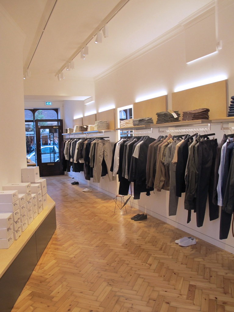 Margaret’s Way–Developing its establishment, London-based menswear brand Margaret Howell opens their second store in Marylebone, London, expanding beyond their real estate in Japan. The store was designed by William Russell, featuring the quintessential Margaret Howell elements – parquet flooring and a wooden shop front – adding birch wood shelving and stainless steel fittings for a relaxed, yet contemporary look. The interior aesthetics match that of the clothing – minimalist with a certain ease and above-all utilitarian.