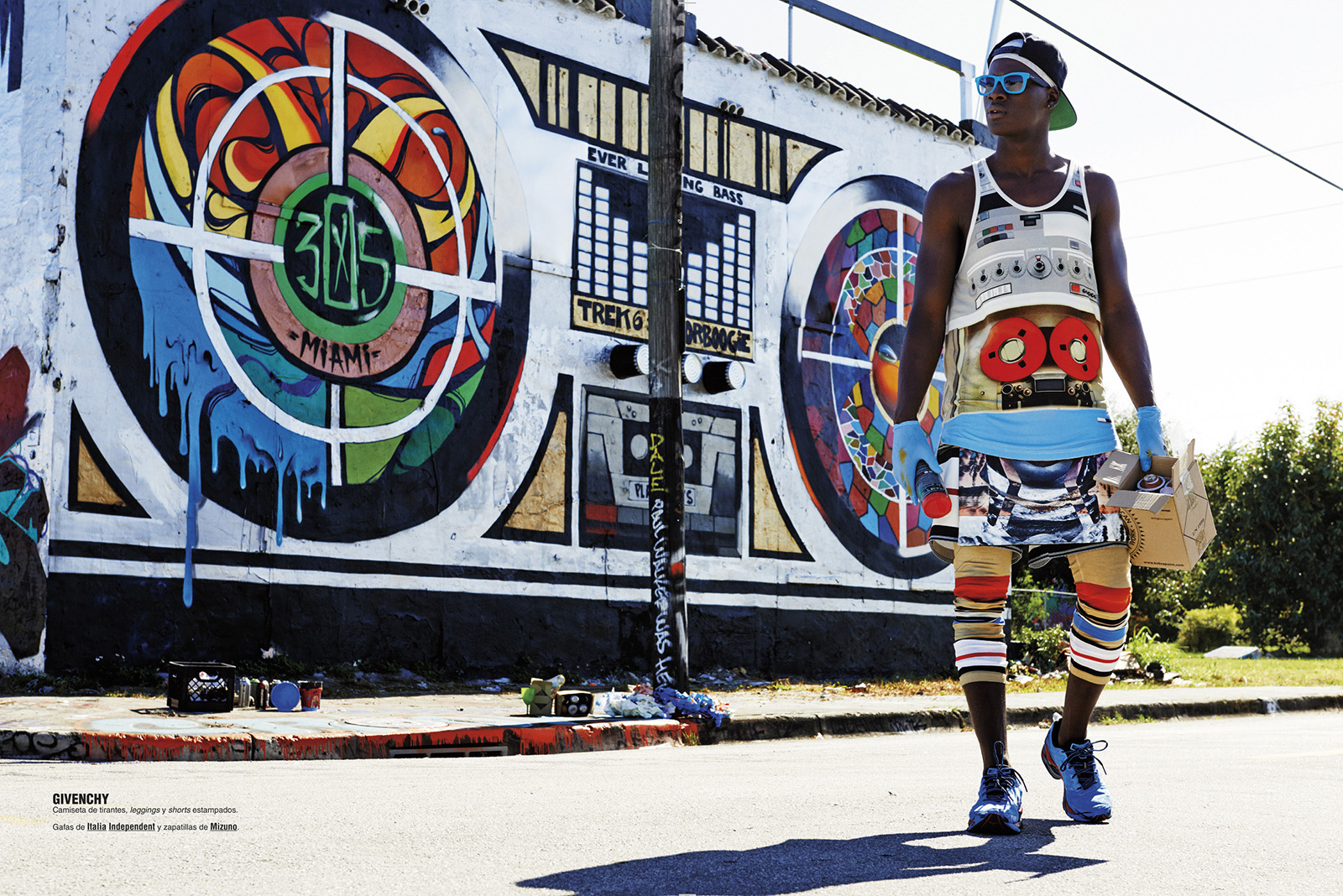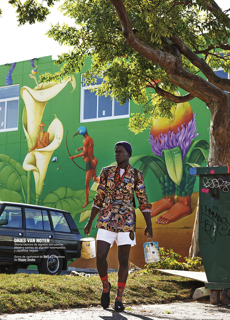 The Collections–Photographer Giampaolo Sgura and stylist Miguel Arnau reunite once more for a vibrant fashion spread featured in the March issue of Spanish GQ, starring models Mariano Ontañon and David Agbodji. Focusing the attention on a series of standout looks from the summer collection of luxury labels, such as Dolce & Gabbana, Salvatore Ferragamo, Givenchy and many more, Sgura captures the models in a series of outdoor images, surrounded by colorful murals and neon lights. / Photography assistance by Filippo Tarantini. Styling assistance by Dfernando. Hair and makeup by Nabil Harlow.