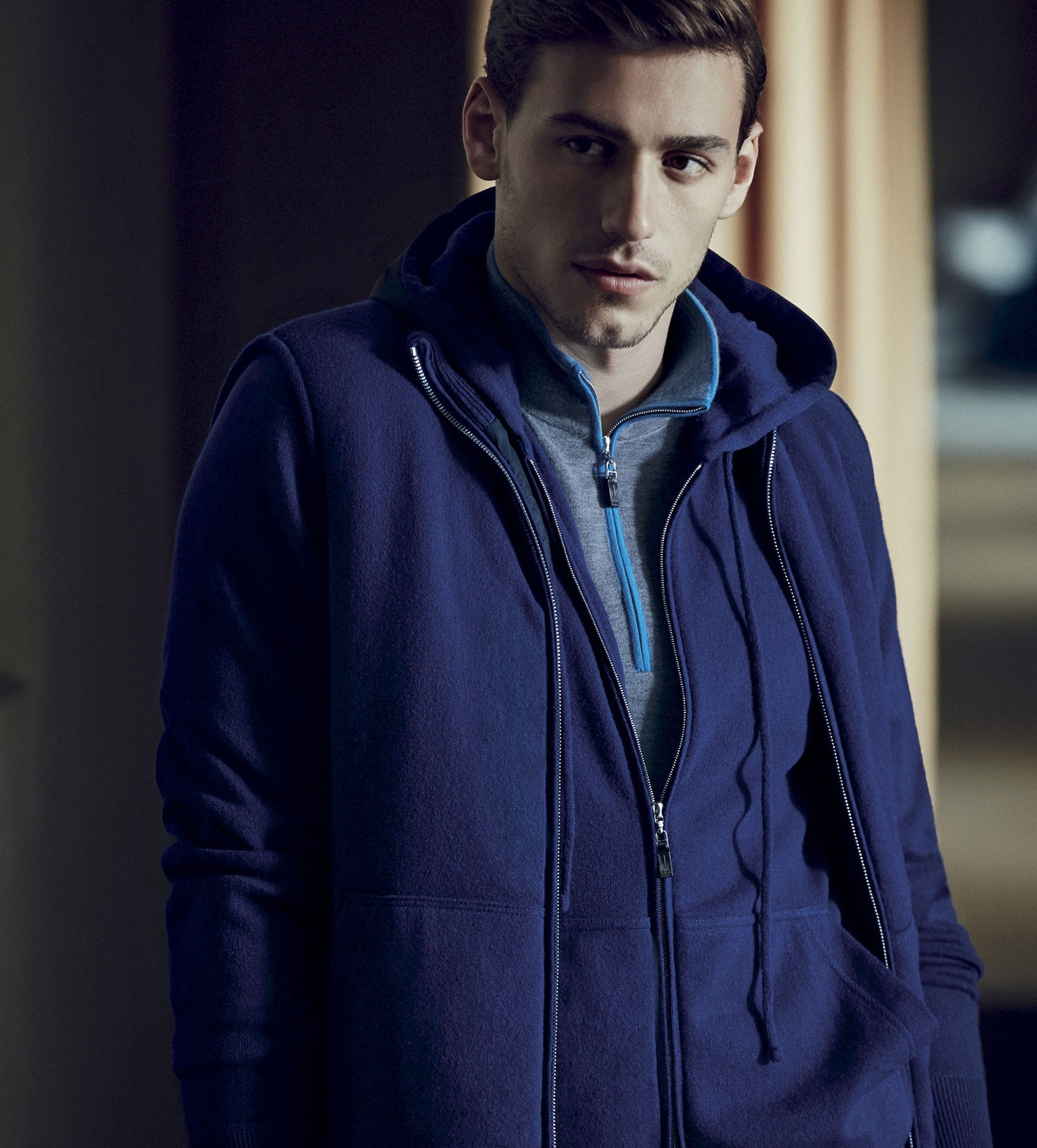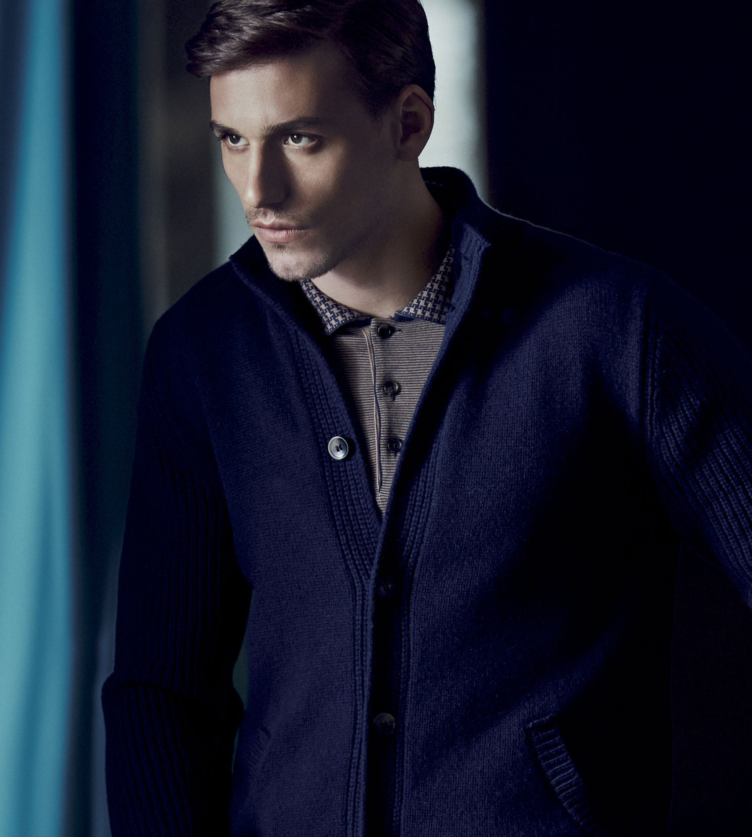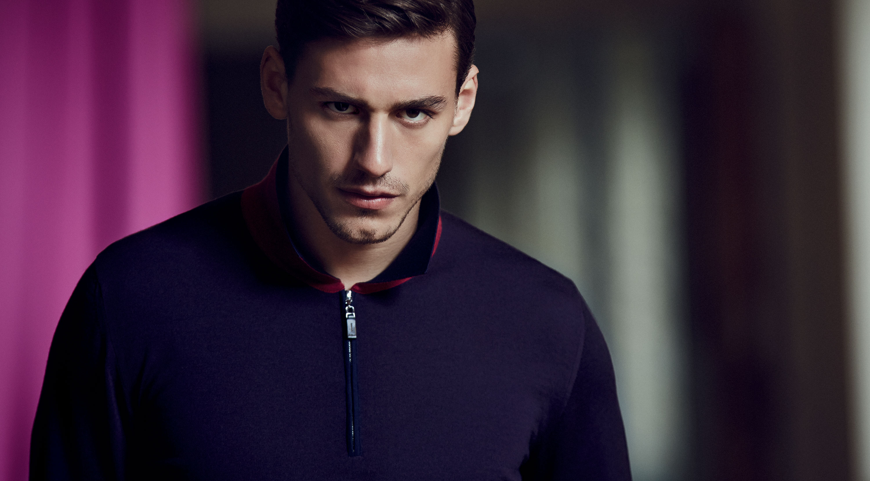 Reshaping Menswear–Argentinian model Mariano Ontañon reunites with Italian luxury knitwear label Svevo Parma to appear in its fall/winter 2014 lookbook. Unveiling a collection that represents the perfect balance between artisanal excellence and modernity, highlighted by a refined selection of colors, in order to reinforce the brand’s concept of timeless sense of beauty, Mariano definitely embodies the label’s ideal customer, who loves garments with a perfect fit and exclusive details. Luxury fabrics, like silk cashmere, are revisited for the fall season with a contemporary approach to the modern concept of menswear, and are often embellished with graphic micro patterns, while all the details are both functional and decorative, conceived to add a more fashionable twist to the garments. The outerwear pieces are certainly the brand’s standout items for the next season, designed combining Svevo Parma’s artisanal heritage with a futuristic vision on contemporary dressing. Mariano also appears in Svevo Parma’s fall/winter 2014 campaign.