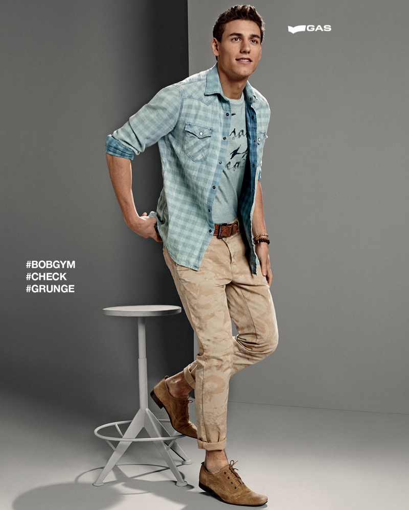 Gas Jeans Spring/Summer 2014 Campaign–One of the stars of Just Cavalli’s spring/summer 2014 campaign, model Mariano Ontañon adds another advertisement to his portfolio, fronting the latest campaign from Gas Jeans. Posing for simple photos in studio, Mariano models Gas’ most recent styles, representing a versatile range to take the fashion brand’s man from one casual event to the next.