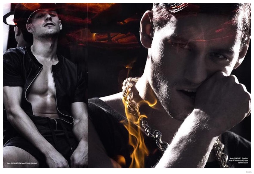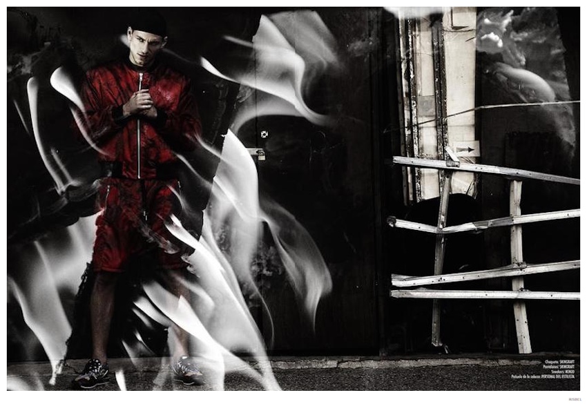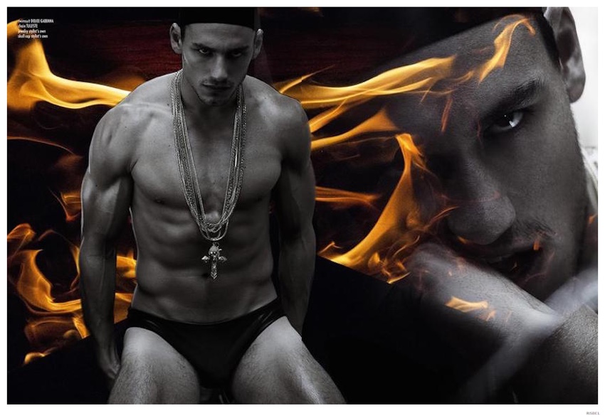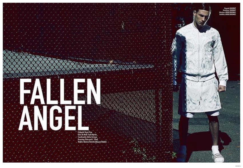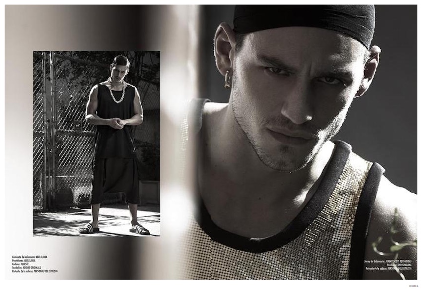 Fallen Angel-Photographed by Brent Chua in New York City, Argentinean model Mariano Ontañon is the latest cover star of Risbel magazine. Tackling the role of the fashionable bad boy for the day, Mariano is styled by Fredo Montes. Heading outdoors in chains and stocking wave caps, Mariano adopts a perverted urban style in looks from the likes of Givenchy and Adidas.