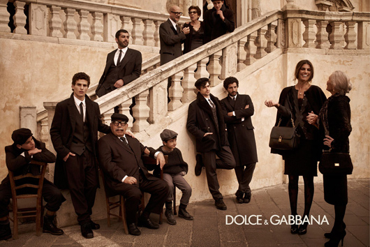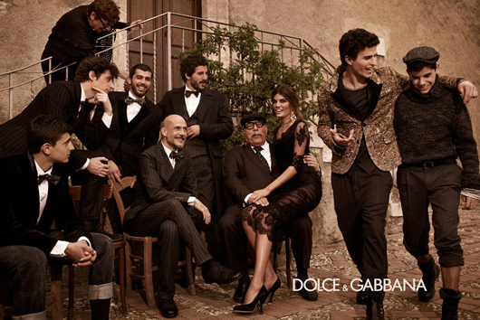 Postcards from Italy–Photographer Mariano Vivanco and Dolce & Gabbana collaborate once again for the fall/winter 2012 menswear campaign of the label, set in the streets of the small Sicilian city of Taormina. To display its baroque-inspired collection, the brand taps Italian actors Francesco Scianna, Gianmarco Tognazzi, Brenno Placido, Flavio Parenti & Carmine Recano who are joined by local people and by Bianca Brandolini d’Adda for a series of images that celebrate family, love and conviviality, values that are at the core of the brand.