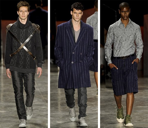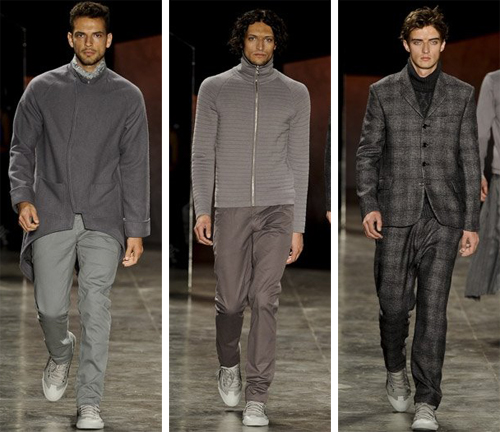 For his latest collection, Brazil’s Mario Queiroz presents a feast for the eyes of epic proportions. An earth-toned color palette outfits a collection of partial kilts, cloaks, knits, and outerwear. Queiroz’s fall collection whimsically evokes the image of the medieval knight, while playing with ideas of gender. Shapes typically attributed to women’s fashion exude an old-time sense of masculinity. This is in part made possible by the sense of urgency that is created with the dramatic, but solemn cloaks and partial pleated kilts. In addition to its unique point of view, the collection succeeds in offering looks for both the adventurous and conservative man; a feat that is hard to achieve as seamlessly as Queiroz has.