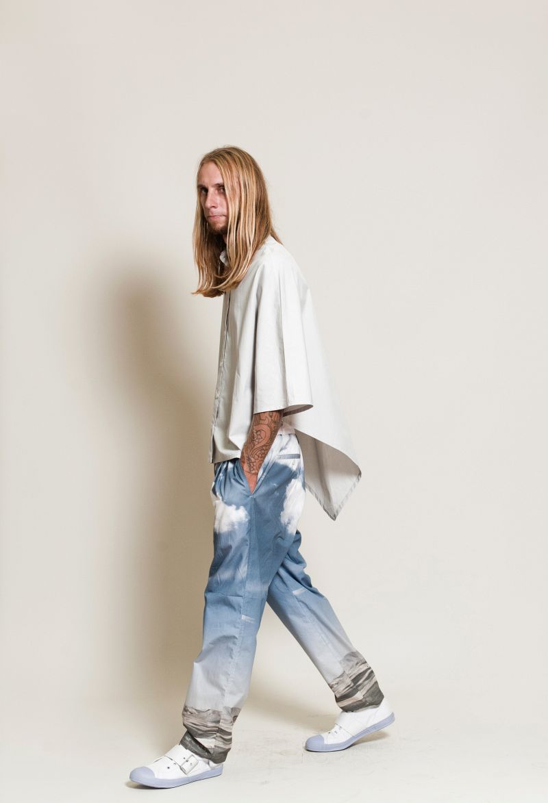 Picture Perfect–Ready for an amazing spring season, spent lounging in the sun with a cool breeze, Marios ironically titled their upcoming collection Nowhere. Featuring strong scenic prints, the lineup consists of re-imagined basics with a new lease on life. From simple oversized tanks to relaxed trousers and button-downs, the label’s stamp on the season is noted by prints of blue skies and novel city life. / Photos by Kuba Dabrowski.