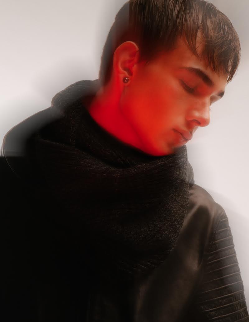 Elmer Olsen fresh face Marius is front and center for a moody exclusive lensed by photographer Mark Binks. Embracing a dark aesthetic, black is the cool go-to as Marius is styled by Shea Hurley (Plutino Group). Clad in a warm winter wardrobe, Marius is an edgy vision in fashions from brands that include John Varvatos, SAND and A.P.C. / Grooming by Alexandre Deslauriers using Oribe and Laura Mercier.