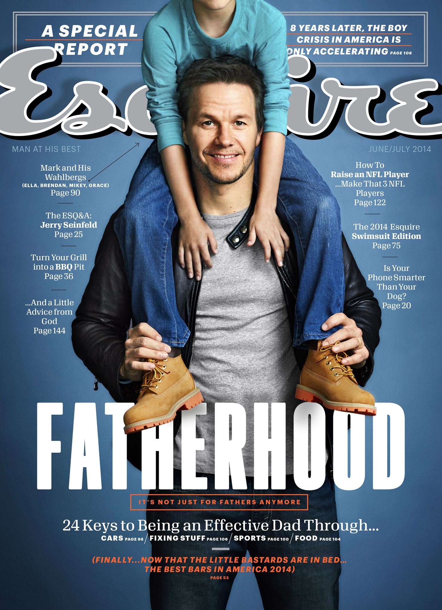 Wahlberg on Fatherhood–With Father’s Day approaching, it is fitting that Esquire celebrates Mark Wahlberg as a father for its June/July cover story. In the accompanying images, Wahlberg is photographed with his children Ella, Brendan, Mikey and Grace. Talking about his children and education, Wahlberg shares, “I can’t tell my kids to go to school and get an education if I don’t have a diploma,” he says. “They’d start thinking, Why do we need to go? You didn’t go and you turned out all right. But I’m proud to have it. If I want to go on and further my education and study film or whatever, I can do that.” Read more at Esquire.com.