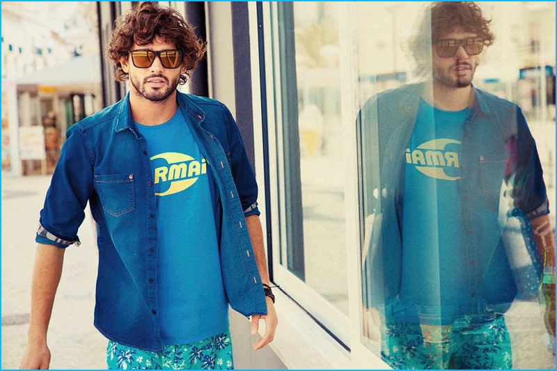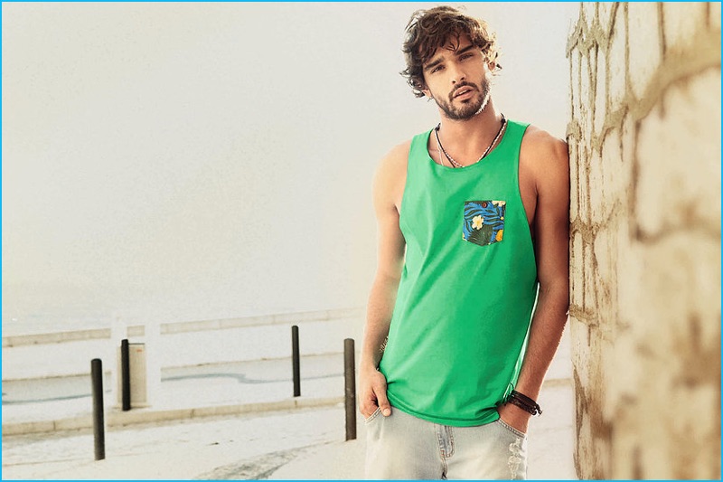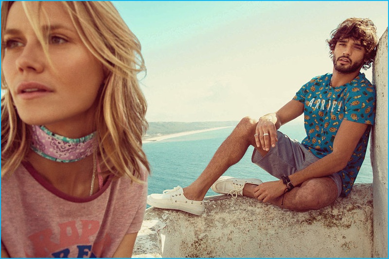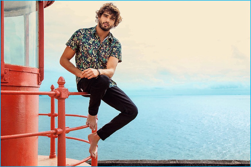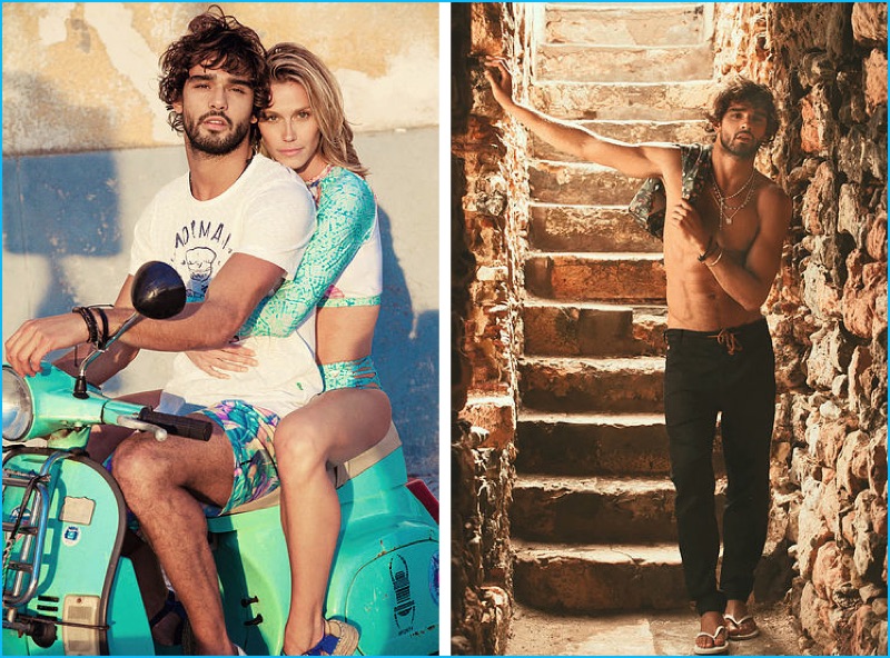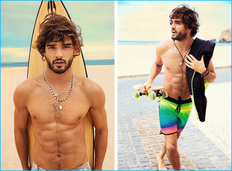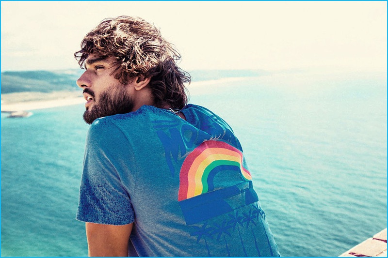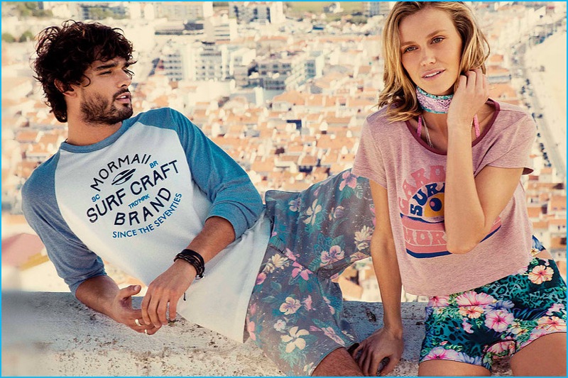 Marlon Teixeira takes in a warm sunny day as he fronts the spring-summer 2017 campaign of surf brand Mormaii. The Brazilian model wears a colorful wardrobe of casual essentials for the outing. Photographed by Andre Passos, Marlon heads to the beach for an inviting series of images. Capturing the spirit of the season, the surfing model is pictured in graphic tees, denim shirts, white boat shoes, graphic t-shirts, and swim shorts.