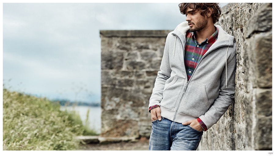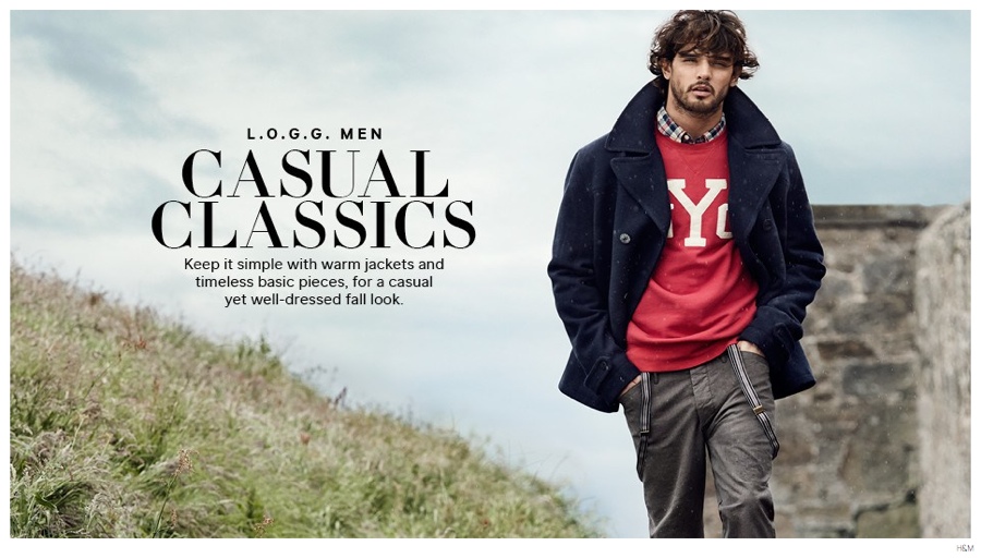 Casual Classics-After showcasing the perfect denim jeans fits, Brazilian model Marlon Teixeira reconnects with H&M, just in time for a cozy fall style update. Venturing outdoors for a brisk stroll, Marlon embraces a young attitude as he models casual fashions with classic undertones. Playfully layered, Marlon’s model wardrobe includes printed knitwear, distressed denim jeans, graphic t-shirts, plaid shirts, suspenders, logo sweatshirts and more.