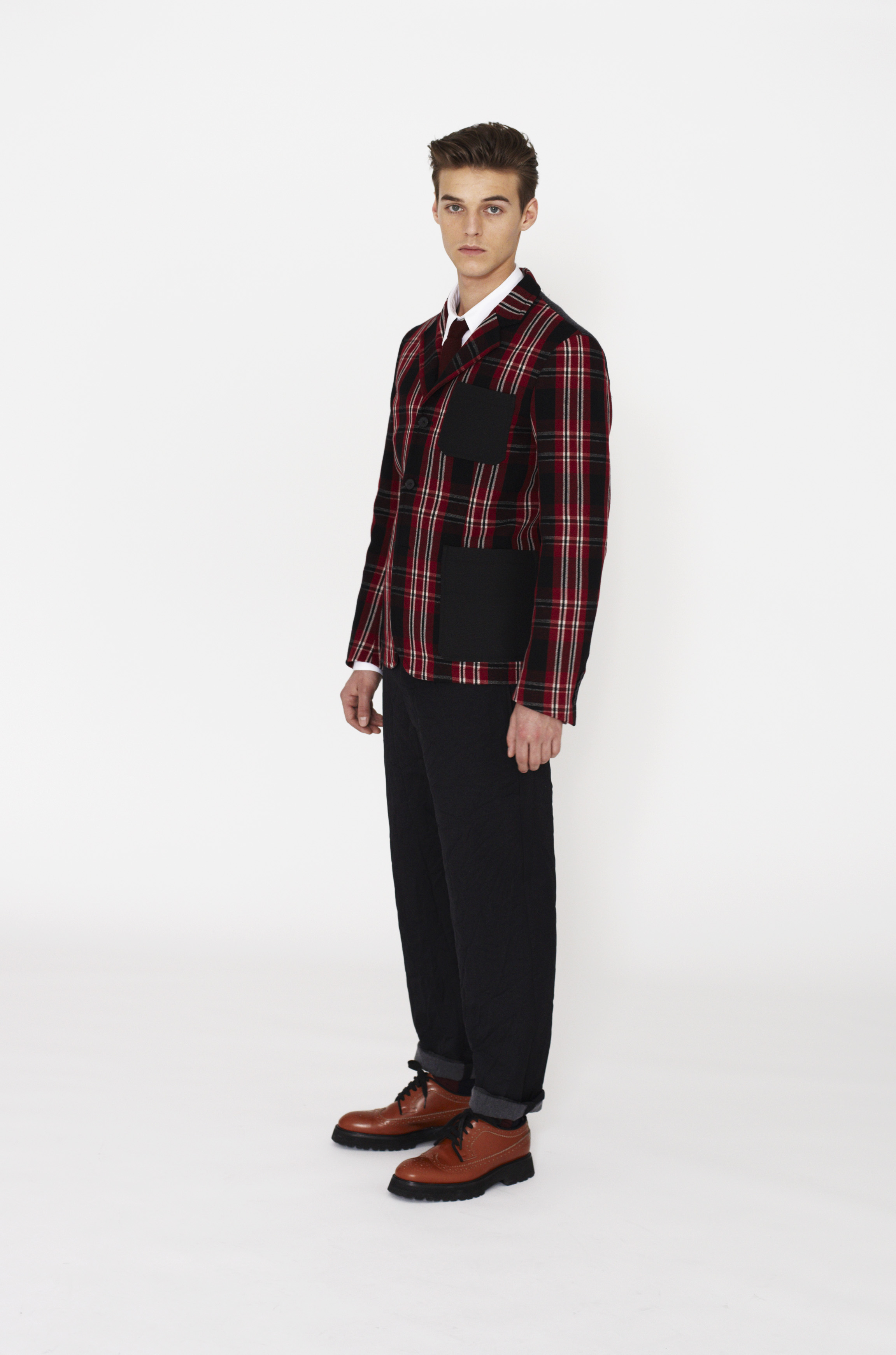 Mature Quirks–Models Alex Dunstan and Robbie Wadge may bring a certain boyish quality to Marni’s latest lookbook, but the brand’s collection definitely exudes a more sophisticated air this season. Apart from a quirky use of fur, Marni turns to tailored outerwear as their essential wardrobe piece. Cut large yet fitted to perfection, their overcoat boasts several fall colors, ranging from camel to burgundy. Juxtaposed with their signature boxy silhouette, shirting, sweaters and other pieces come together with the use of color blocking and plaid accents.