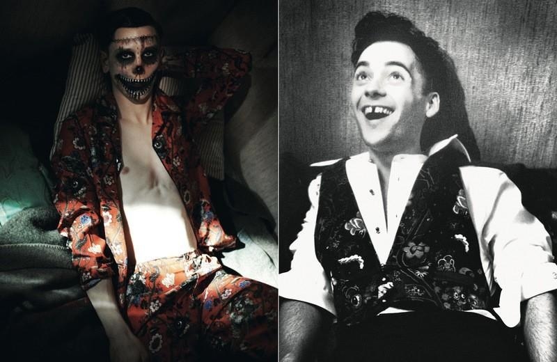 The Masque of Anarchy–Wearing luxurious suiting and robes from French fashion house Louis Vuitton, models Daragh Sheridan, David Metcalfe, Frank Lebon and Tom Gaskin come together for an editorial in AnOther Man styled by Alister Mackie. Inspired by the 1819 poem The Masque of Anarchy by Percy Bysshe Shelley, the models step in for eccentric photographs by David Sims.