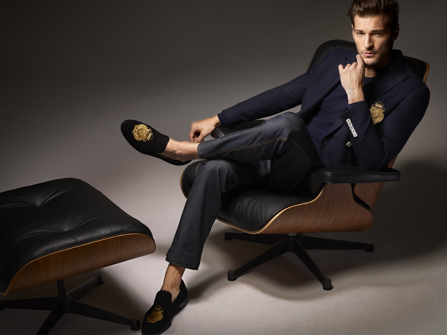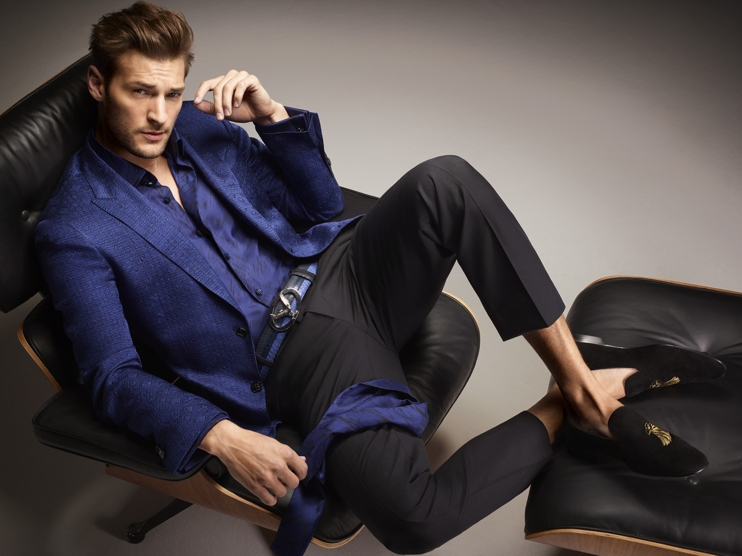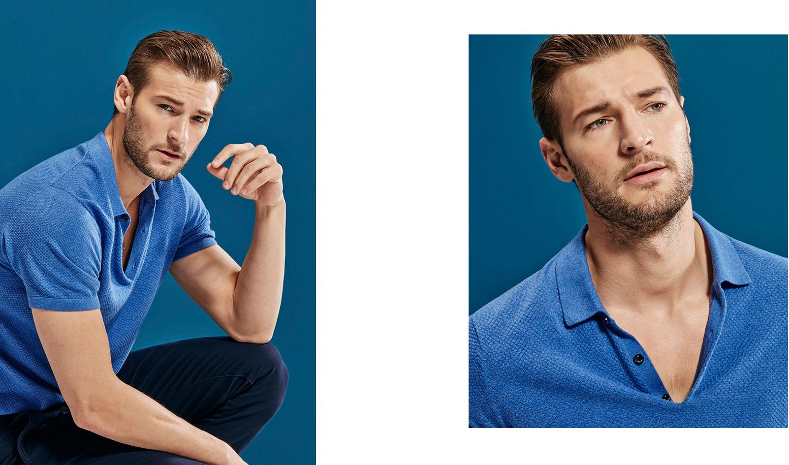 Dan Murphy not only models for Massimo Dutti, but is the star of Billionaire’s spring-summer 2016 campaign. Dan takes center stage, appearing in the brand’s current advertisements. Embracing a dapper stance on style, Dan is pictured in rich blue suiting and a wardrobe of luxurious staples that includes a leather bomber jacket.