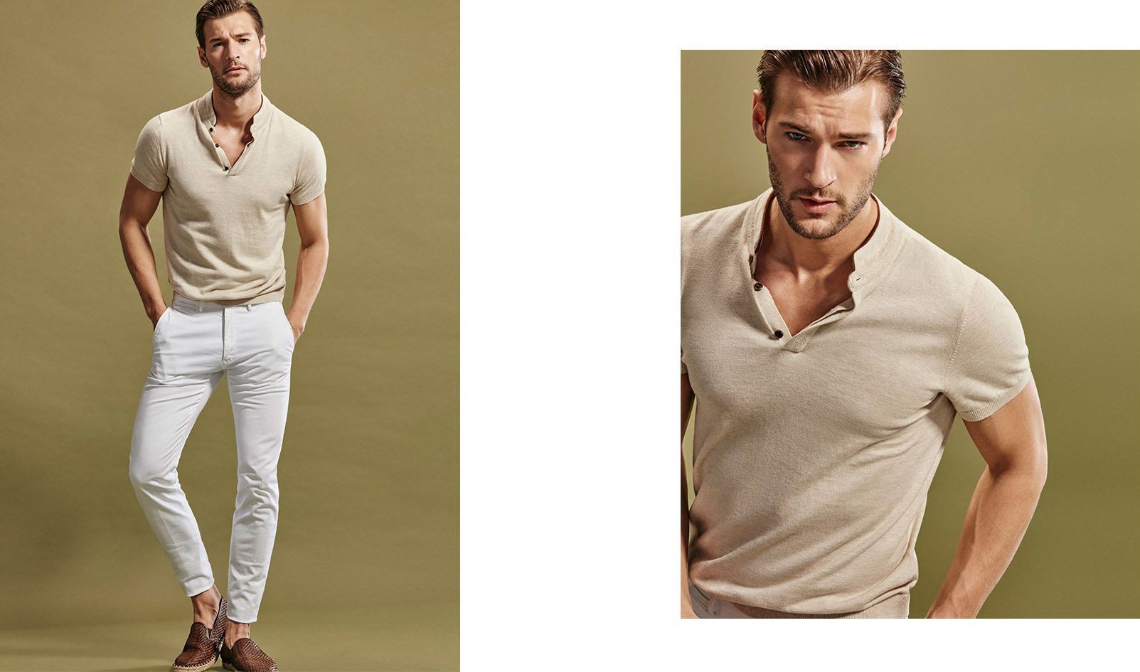 Approaching summer, Massimo Dutti hones in on men’s essentials. First up for the Spanish brand is the iconic polo shirt. Enlisting model Dan Murphy for a style edit, Massimo Dutti highlights its various iterations on the polo shirt. Available in a variety of colors, the staple is front and center with a fitted silhouette. Offering a modern spin on the polo, Massimo Dutti reinterprets the shirt with a mandarin collar as well as military style pockets and a textured finish.