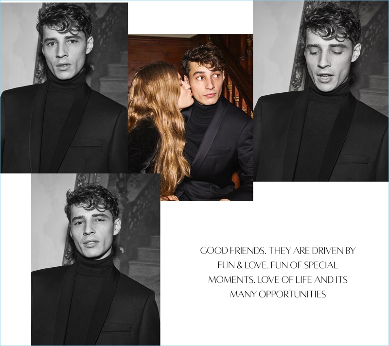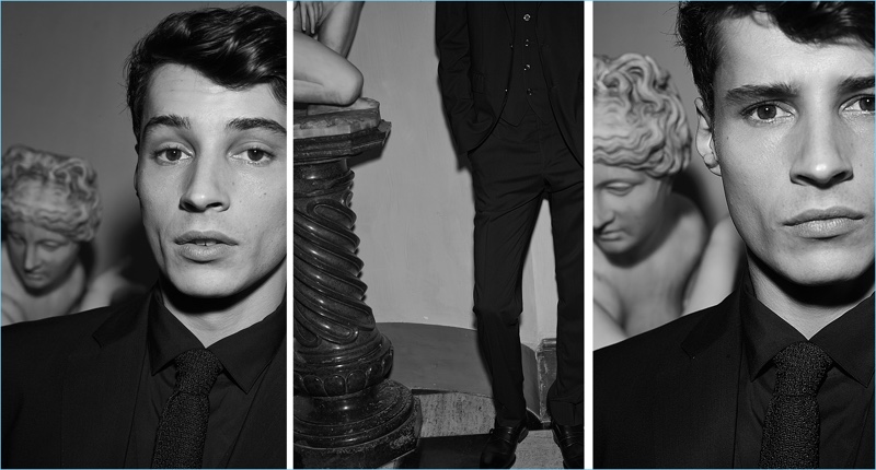 Massimo Dutti makes a dark proposal for the holiday season. Formalwear takes on classic undertones with sharp black numbers. Photographer Sean Thomas captures Massimo Dutti’s elegant suggestions for formal attire. Showcasing the various styles, model Adrien Sahores appears in an edit for the brand’s Paper publication. The French model travels to London for the occasion. Here, he wears three-piece suits, tuxedo jackets, and sophisticated bow-ties.