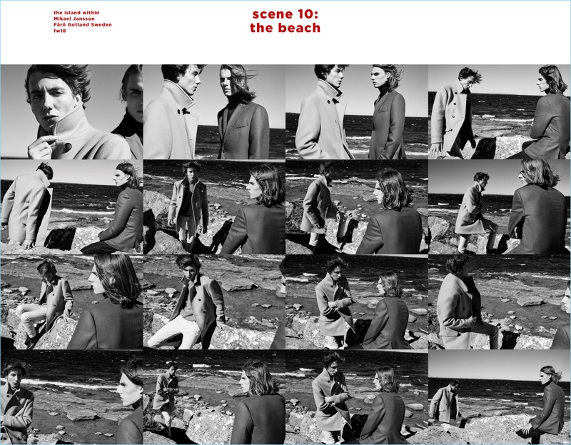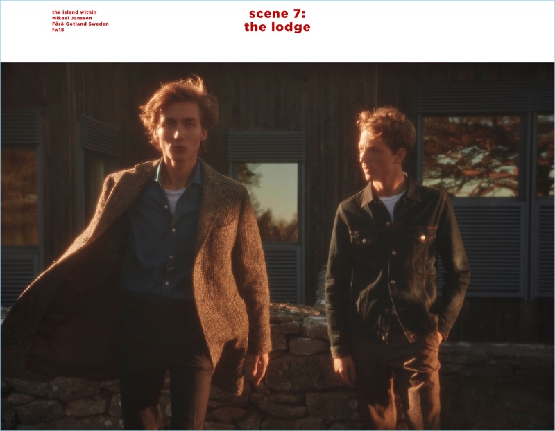 Massimo Dutti escapes to “The Island Within” for its fall-winter 2018 campaign. The season unfolds with a series of cinematic scenes. First, Massimo Dutti reunites with model Hugo Sauzay. Directed by Mikael Jansson, the French model joins Paul Hameline and Magnus Østergaard. Stylist Geraldine Saglio is tasked with styling the trio. They embrace a sophisticated ease in classic menswear from Massimo Dutti. Key items include ribbed sweaters, pleated trousers, and tailored coats.