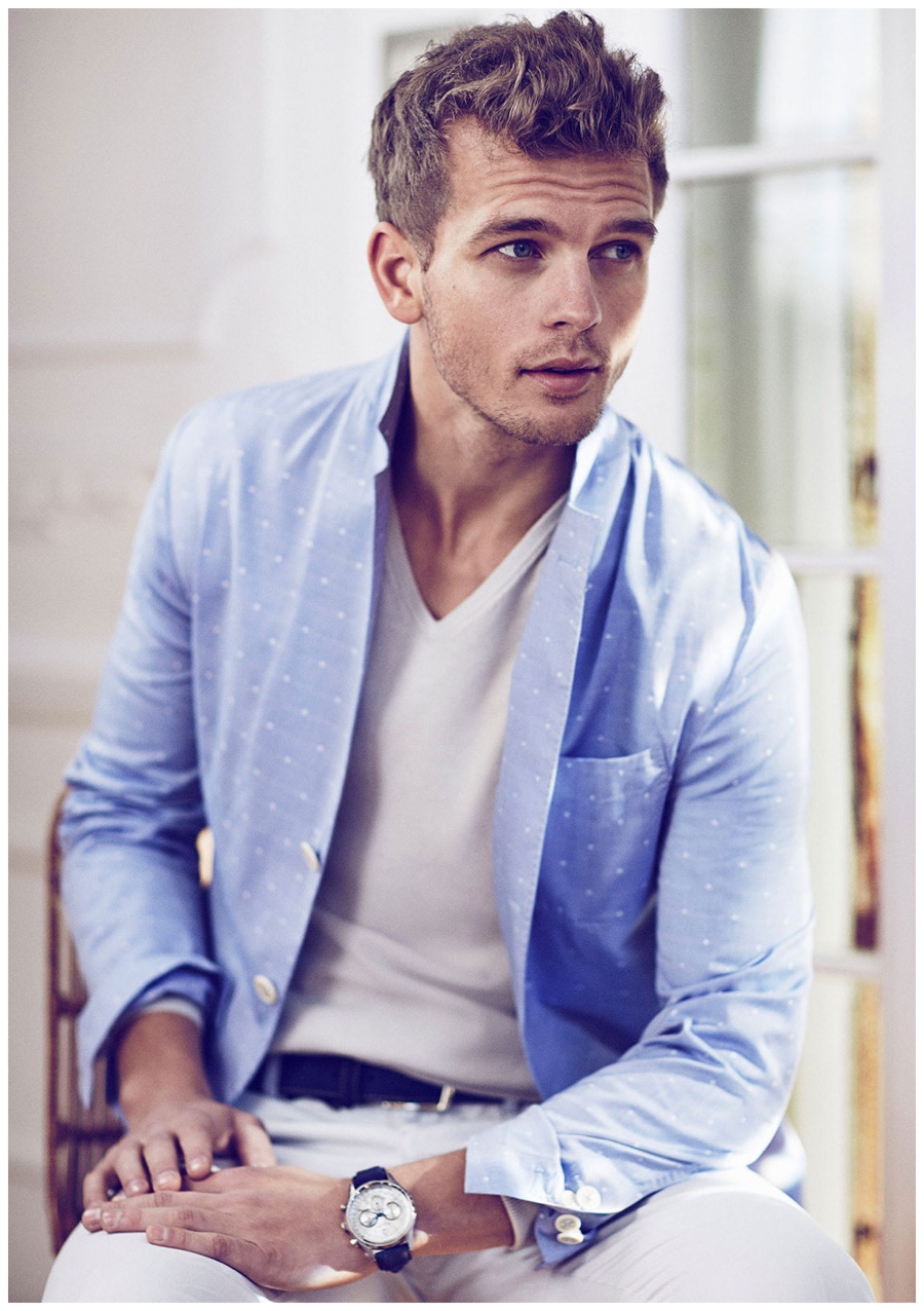 Benjamin Eidem is a casual vision in a light blue unstructured jacket.Pin