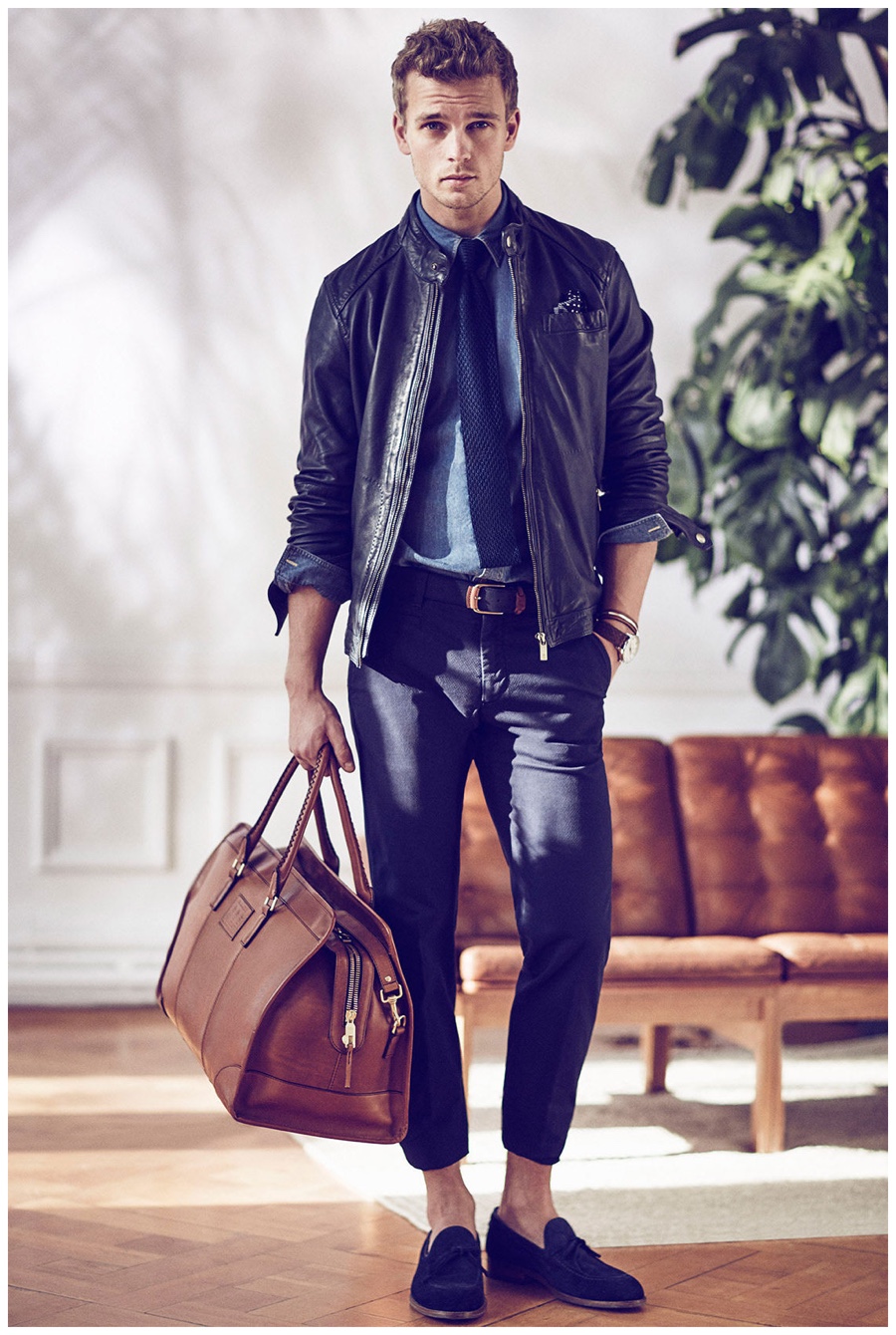 Benjamin Eidem carries one of Massimo Dutti’s luxe leather bags.