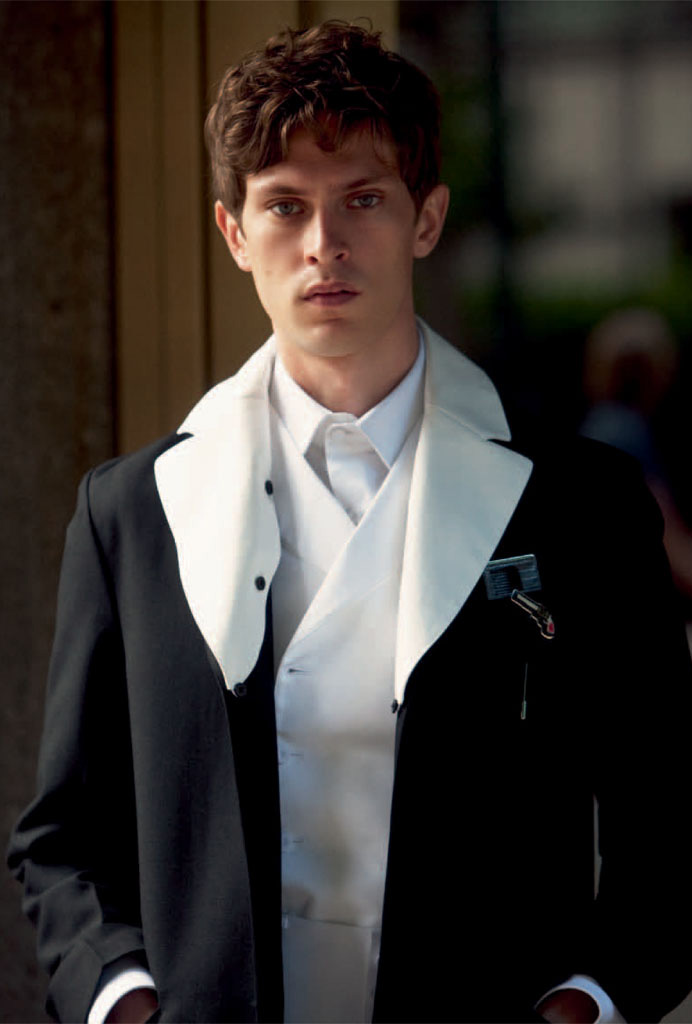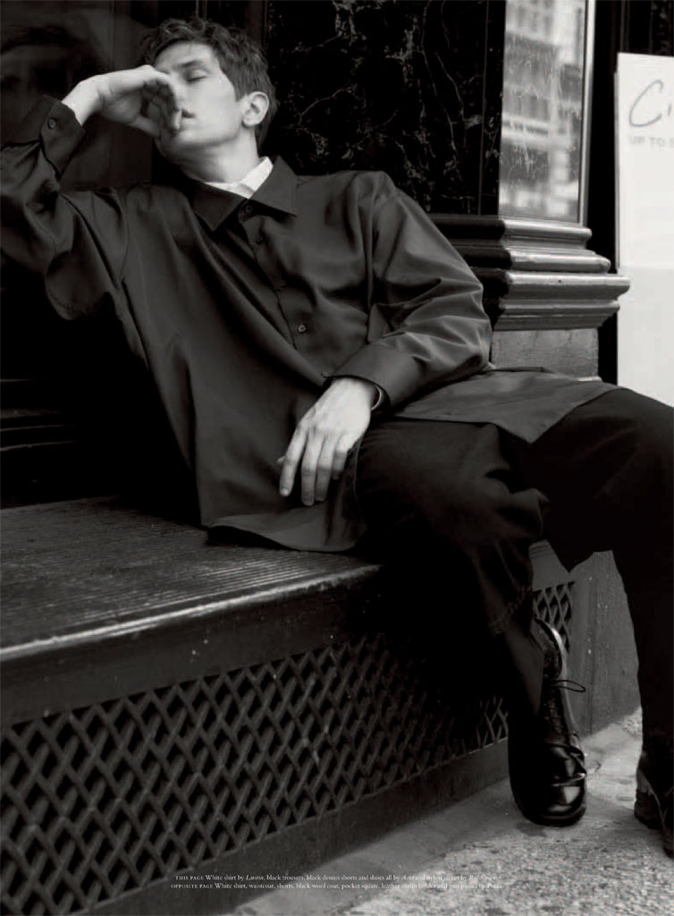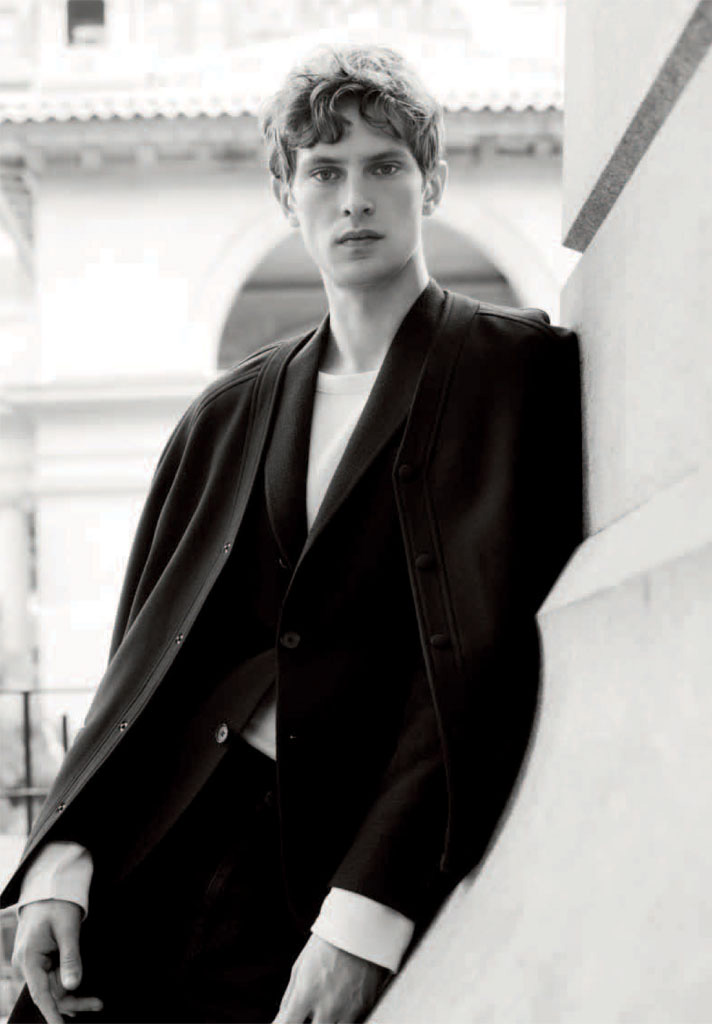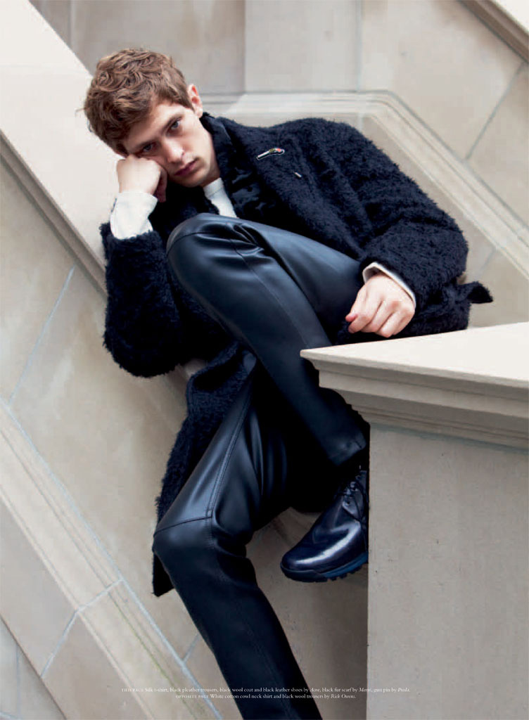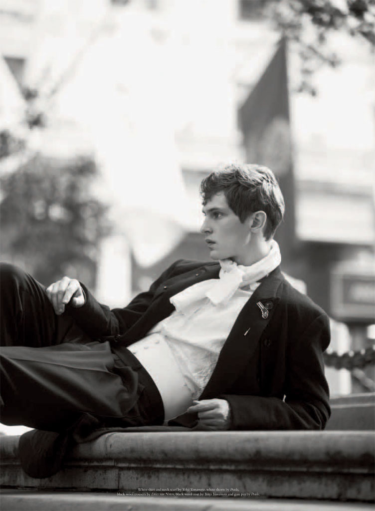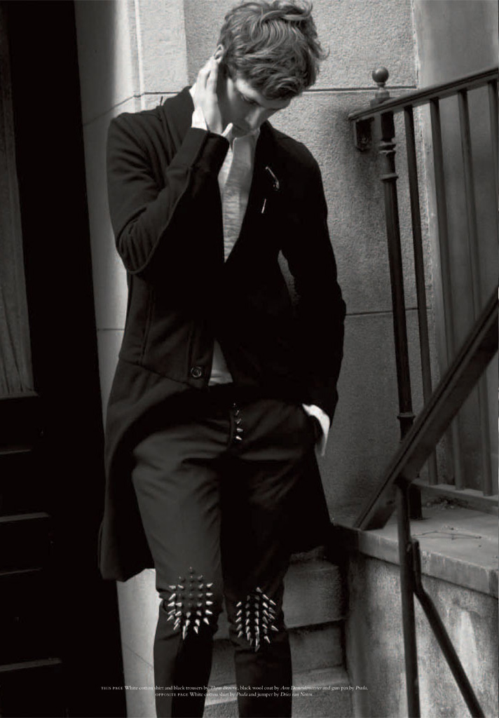 The Modern Dandy–For the latest issue of Acne Paper, Danish model Mathias Lauridsen appears before the lens of David Armstrong for a sophisticated story styled by Mattias Karlsson. Outfitted in designs from the likes of Prada and Dries Van Noten, Mathias dons military-inspired looks and dandyish designs in a polished way, playing the role of a modern prince of style.