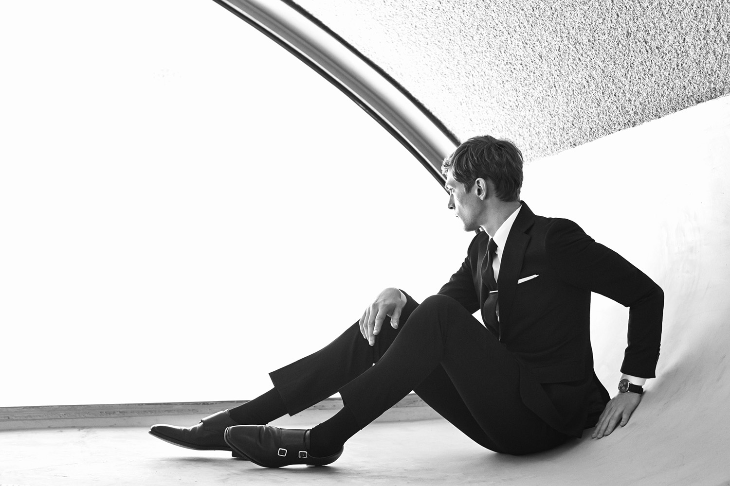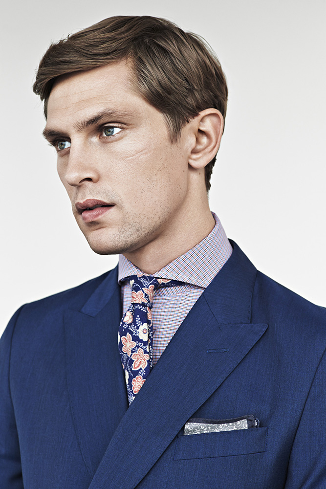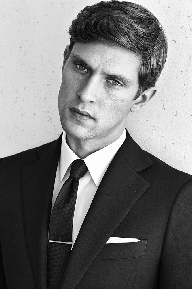 Eton of Sweden Fall/Winter 2014 Campaign-Impeccably dressed in a series of sartorial two-piece suits, leading model Mathias Lauridsen appears before the lens of photographer Tobias Lundkvist for the fall/winter 2014 campaign of Eton of Sweden. Dressed to impress in slim-fitted black suits, or sporting rich blue double-breasted jackets, Mathias customizes his fall look with textured silk ties and black and brown formal leather shoes, while graphic shirts and printed silk pocket squares add to the whole styling a precise personality.